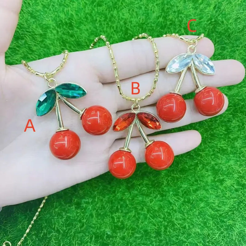 Wholesale Jewelry Casual Sweet Cherry Copper Zircon 18K Gold Plated Handmade Plating Inlay Handmade Chain Necklace