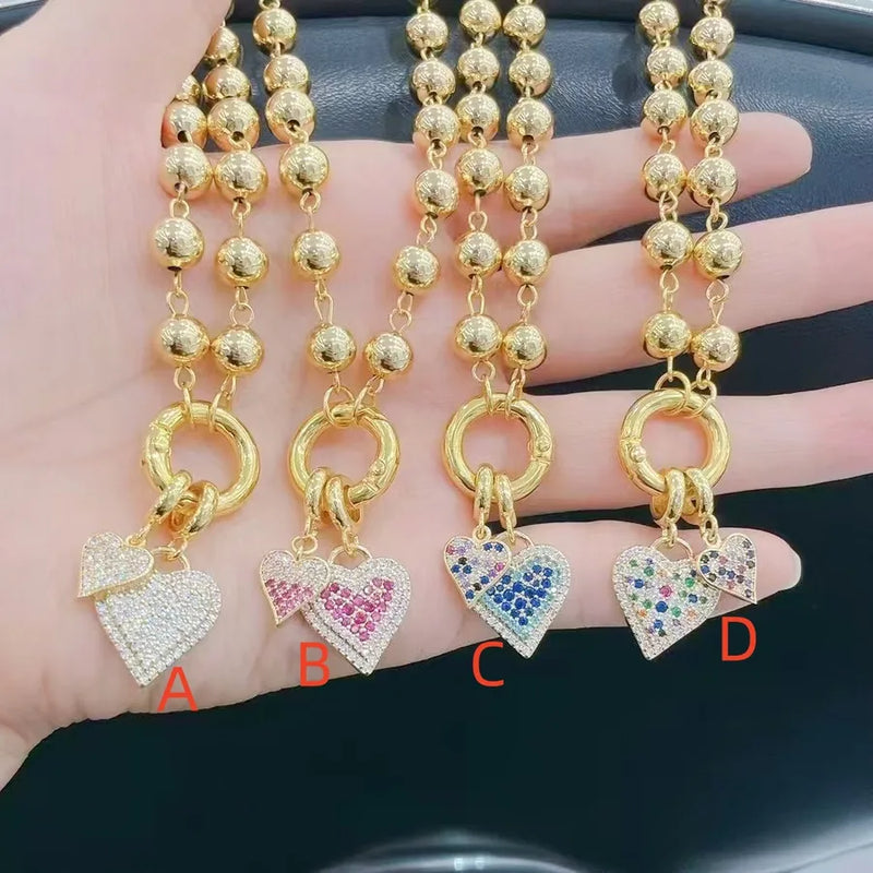 Wholesale Jewelry Casual Sweet Classic Style Heart Shape Copper Zircon Polishing Plating Inlay ball chain Pendant Necklace