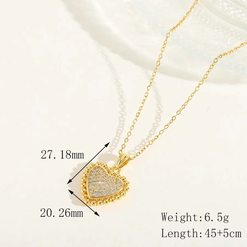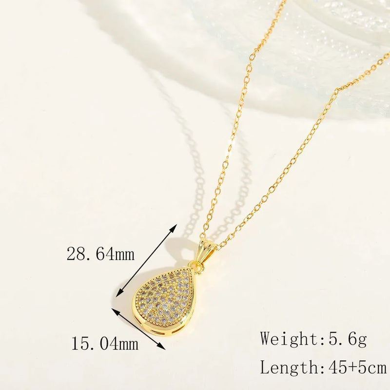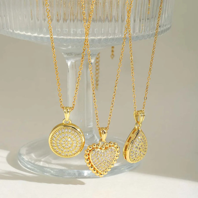 Wholesale Jewelry Casual Sweet Commute Round Water Droplets Heart Shape 304 Stainless Steel Copper Zircon Imitation Gold Plating Inlay cable chain Pendant Necklace