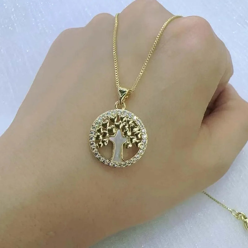 Wholesale Jewelry Casual Sweet Pastoral Tree Heart Shape Copper Acrylic Zircon 18K Gold Plated Inlay box chain Pendant Necklace