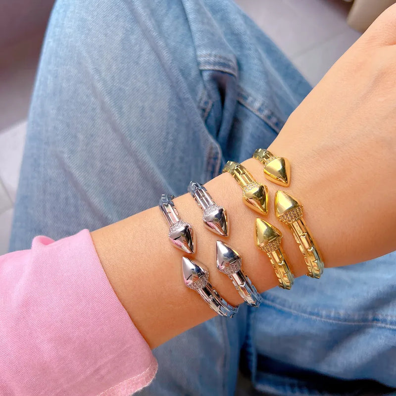 Wholesale Jewelry Casual Vacation Modern Style Triangle Copper Zircon 18K Gold Plated White Gold Plated Handmade Polishing Inlay Bangle