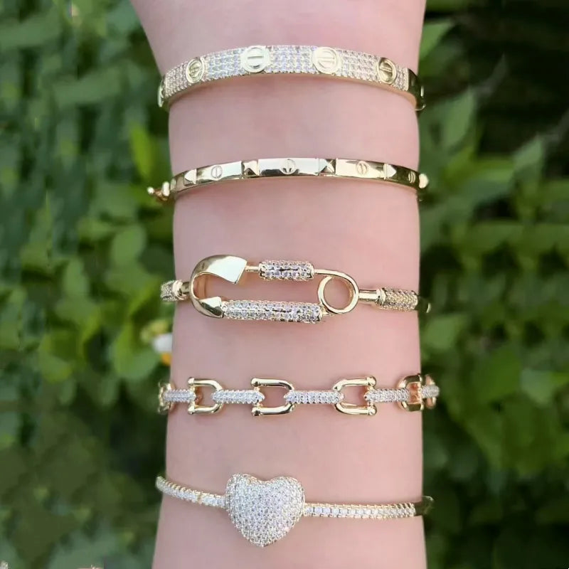 Wholesale Jewelry Casual Vacation Modern Style U Shape Pin Heart Shape Copper Zircon 18K Gold Plated Polishing Inlay Bangle