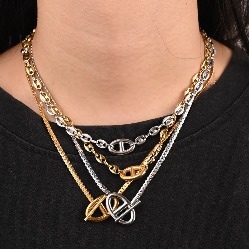 Wholesale Jewelry Casual Vacation Simple Style Coffee Bean Stainless Steel 18K Gold Plated Polishing Plating coffee bean chain Necklace