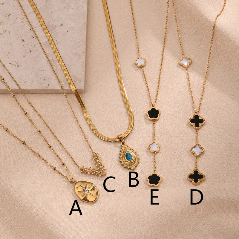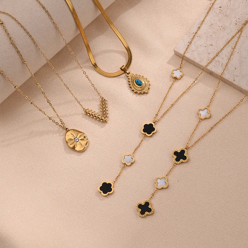 Wholesale Jewelry Casual Vacation Simple Style Four Leaf Clover Water Droplets Flower 304 Stainless Steel Synthetic Turquoise Rhinestones Shell 18K Gold Plated Polishing Plating Inlay Handmade Chain cable chain snake chain Necklace