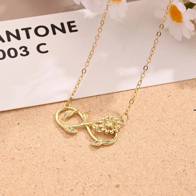 Zircon Flower Infinite Symbol Necklace (Gold)【String Length: 420+45mm】