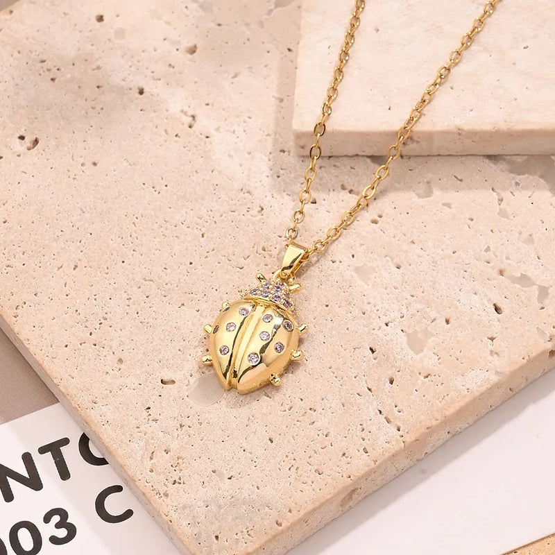 Zircon Ladybird Necklace (Gold)【String Length: 395+60mm】
