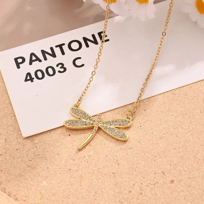 Zircon Dragonfly Necklace (Gold)【String Length: 425+45mm】