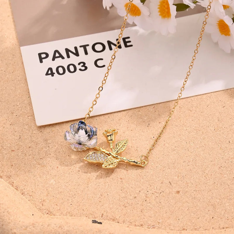 Resin Rose Necklace (Gold)【String Length: 430+40mm】
