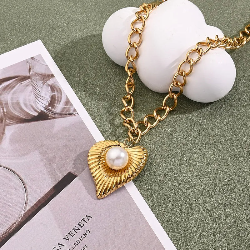 Pearl Striped Love Necklace (Gold) [Length: 410+70mm]]
