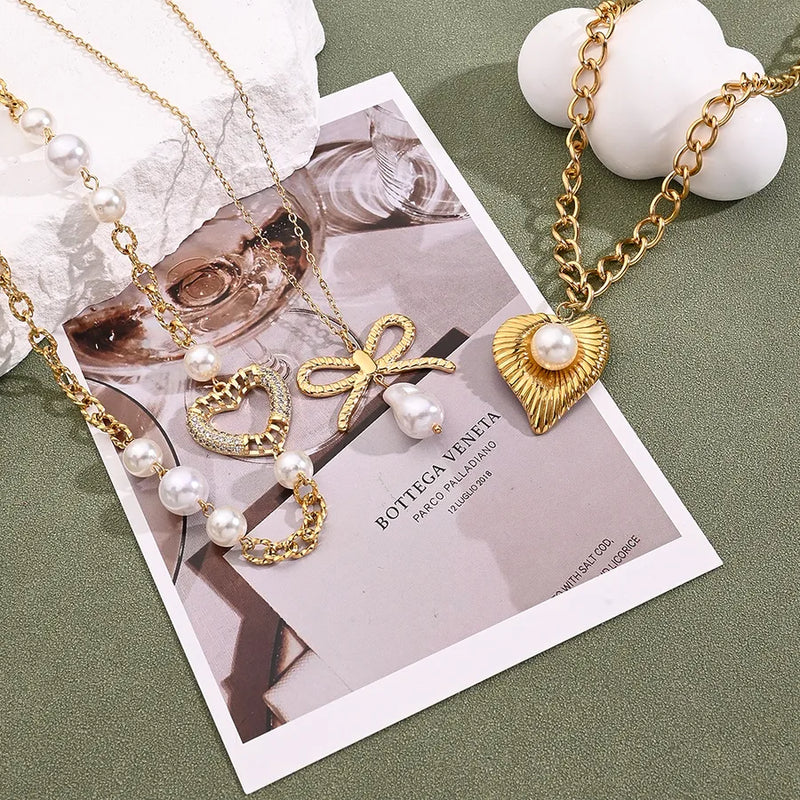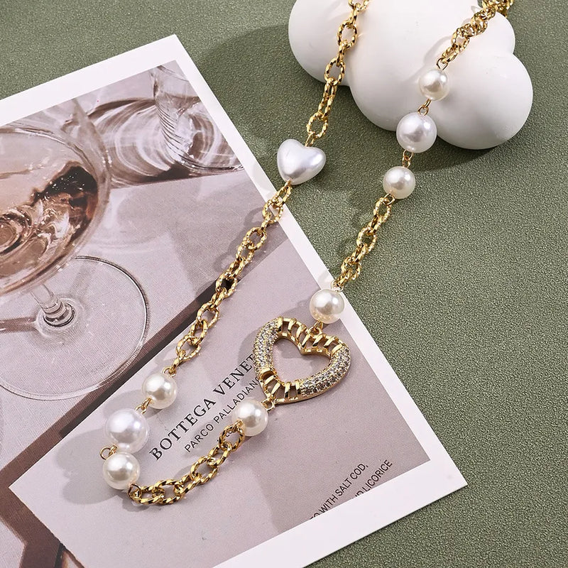 Rhinestone Love Pearl Necklace (Gold) [Length: 475+65mm]]