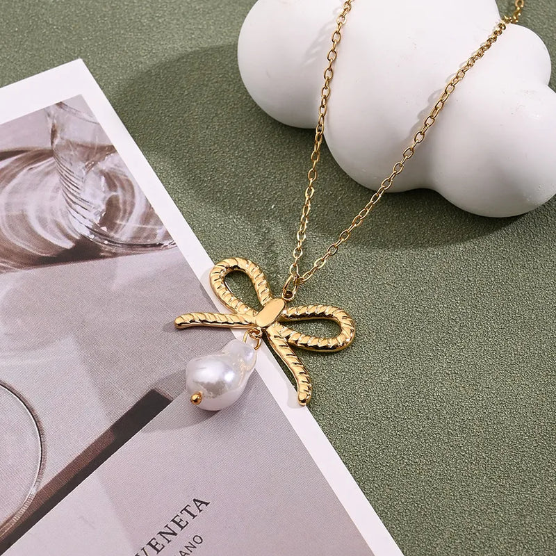 Pearl Bow Necklace (Gold) [Length: 400+60mm]]