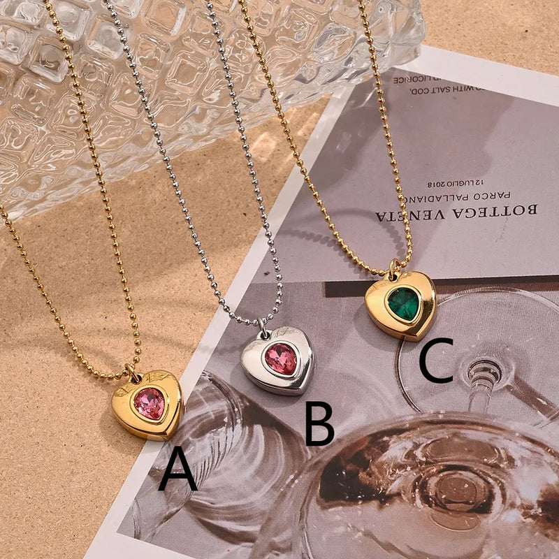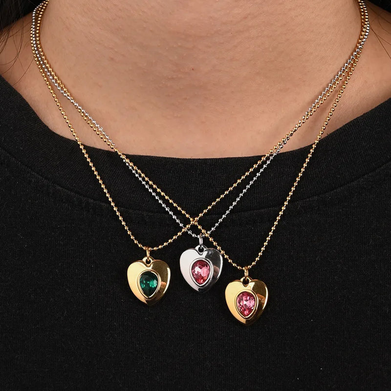 Wholesale Jewelry Casual Vacation Simple Style Red Heart Stainless Steel Rhinestones 18K Gold Plated Polishing Plating ball chain Necklace