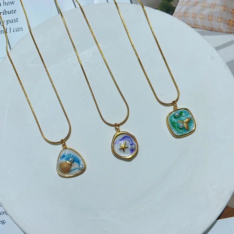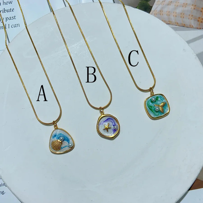 Wholesale Jewelry Commute Starfish 304 Stainless Steel Imitation Pearl 18K Gold Plated Plating Inlay Pendant Necklace Snake Chain