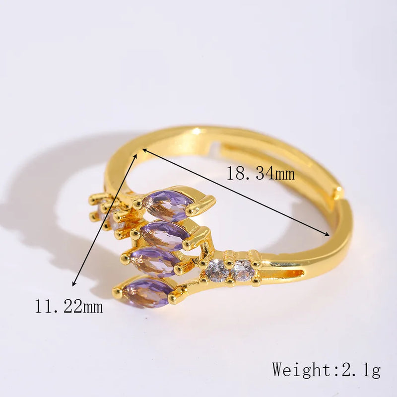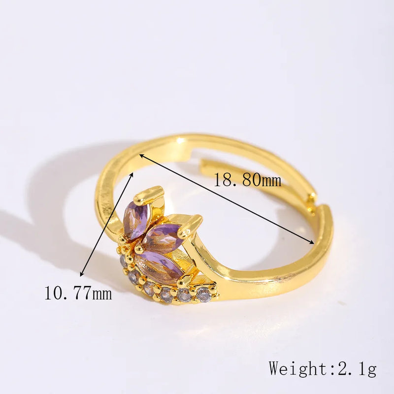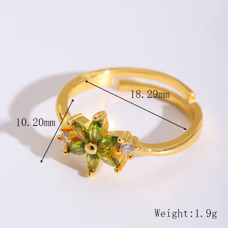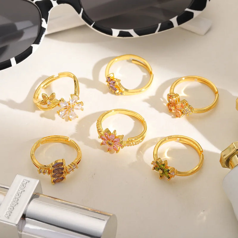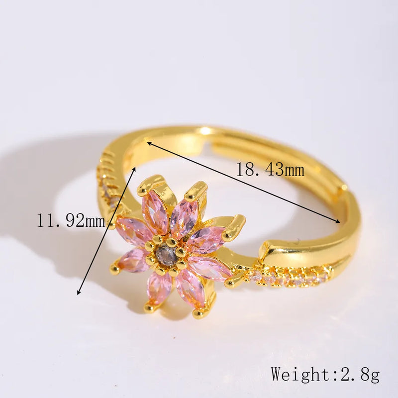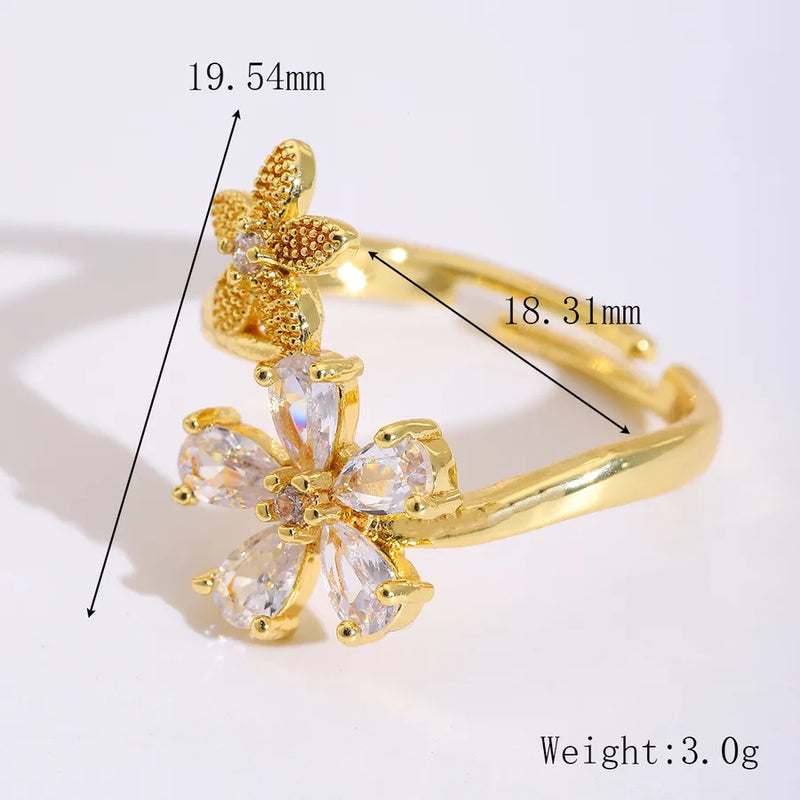 Wholesale Jewelry Cute Sweet Artistic Flower 304 Stainless Steel Zircon 18K Gold Plated Plating Inlay Open Rings