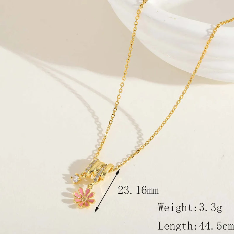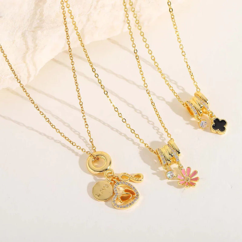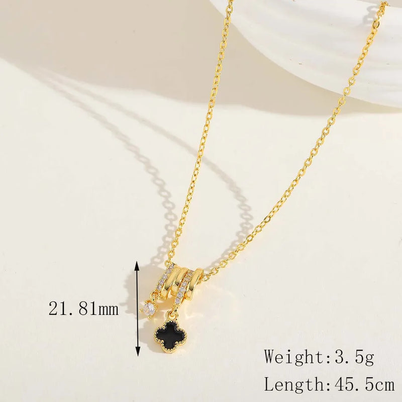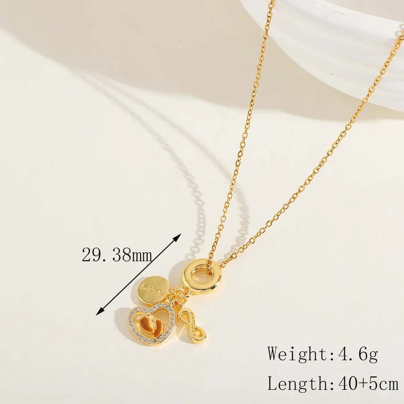 Wholesale Jewelry Cute Sweet Artistic Four Leaf Clover Heart Shape Footprint 304 Stainless Steel Copper Zircon Imitation Gold Plating Inlay cable chain Pendant Necklace