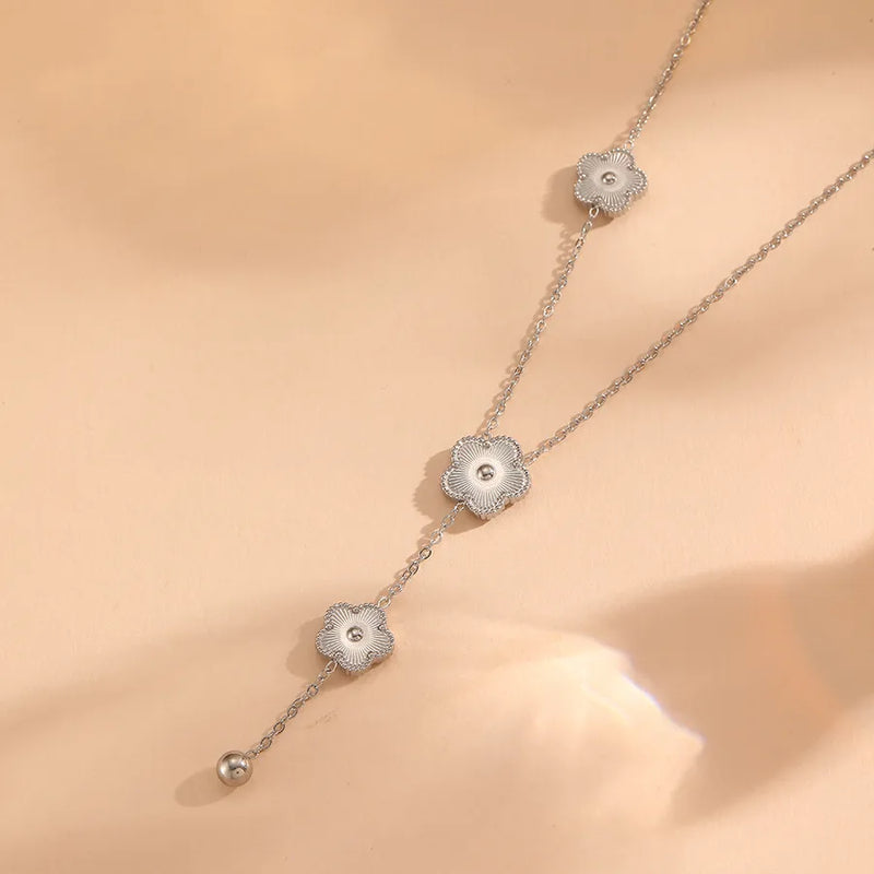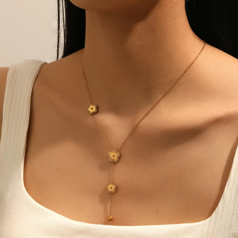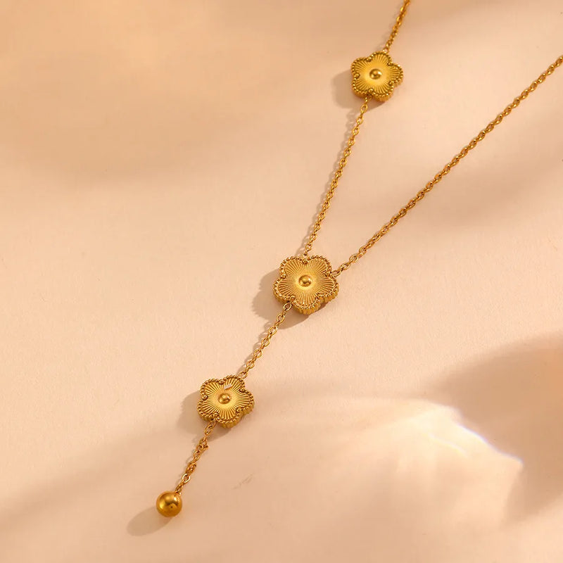 Wholesale Jewelry Cute Sweet Four Leaf Clover Titanium Steel 18K Gold Plated Hollow Out cable chain Pendant Necklace