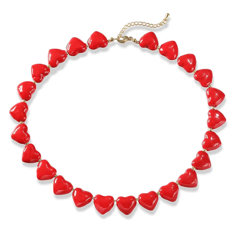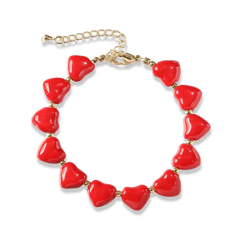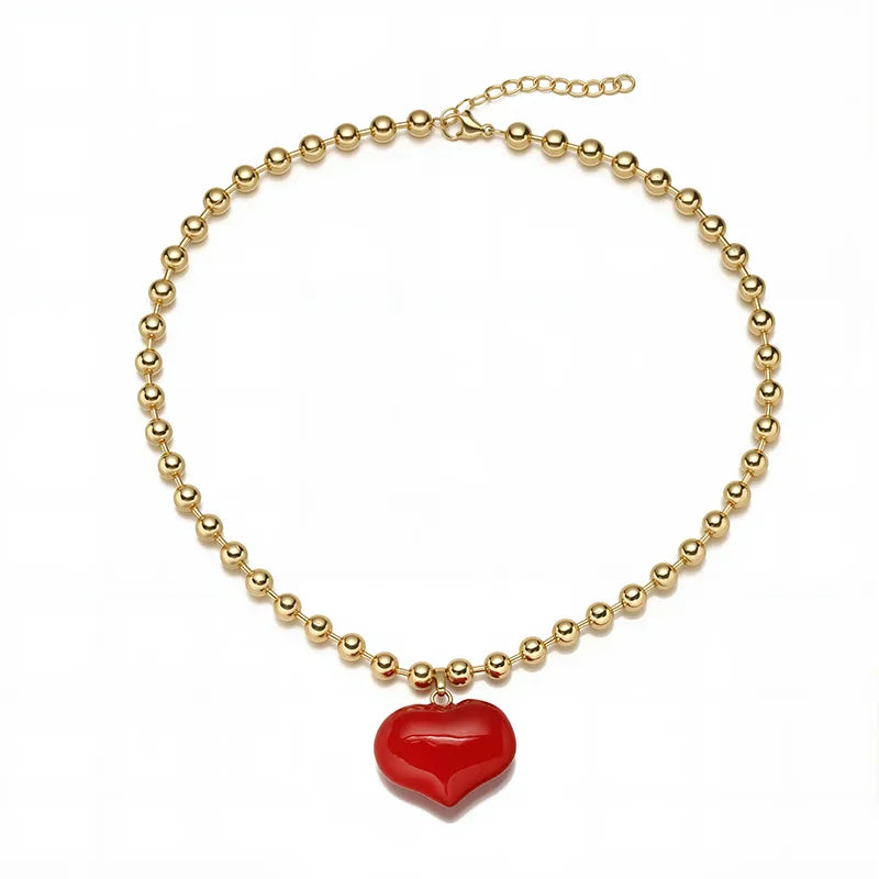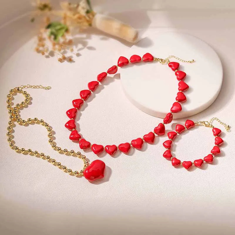 Wholesale Jewelry Cute Vintage Style Sweet Heart Shape Copper Copper 18K Gold Plated Enamel Plating Beaded Chain Jewelry Set