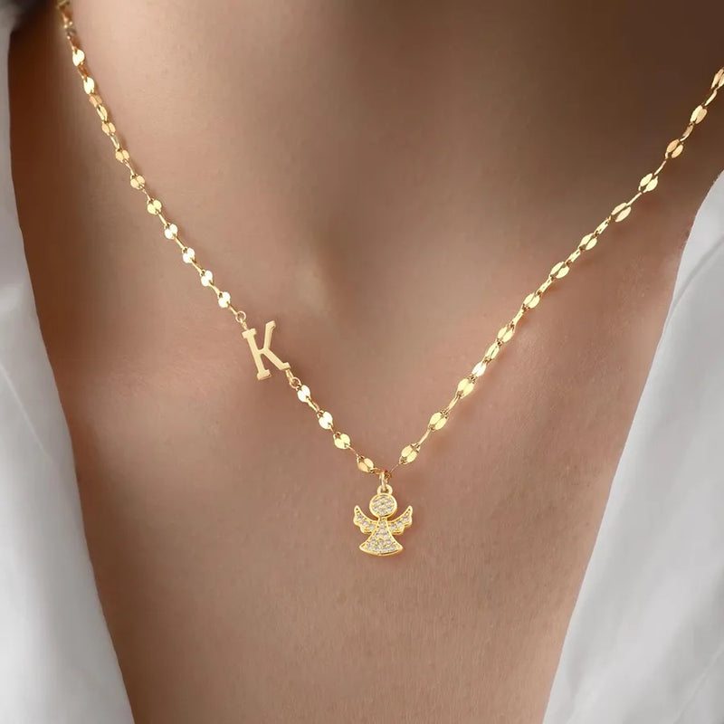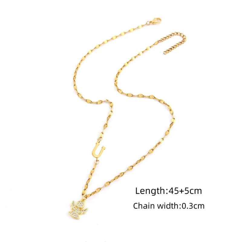 Wholesale Jewelry Elegant Classic Style Angel Letter 201 Stainless Steel 304 Stainless Steel Copper Zircon Lip Chain Pendant Necklace