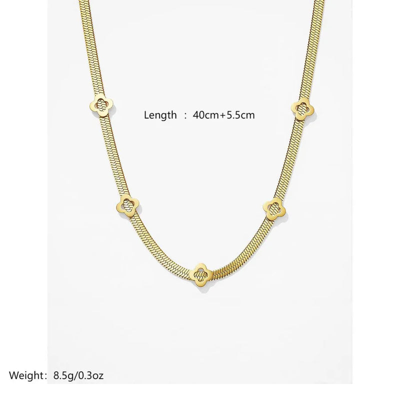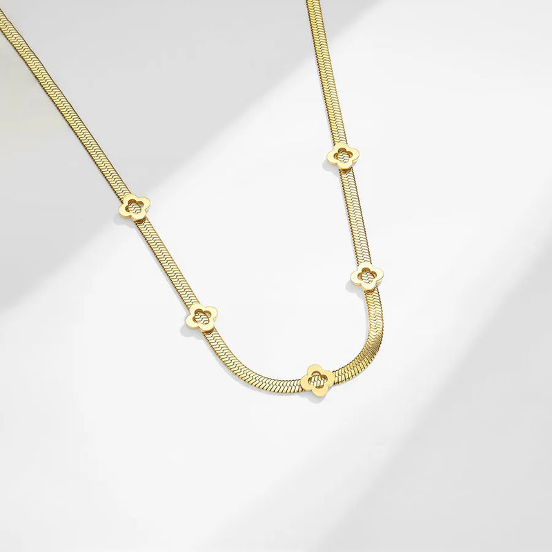 Wholesale Jewelry Elegant Flower 304 Stainless Steel 14K Gold Plated Polishing Plating Flat Snake Chain Necklace