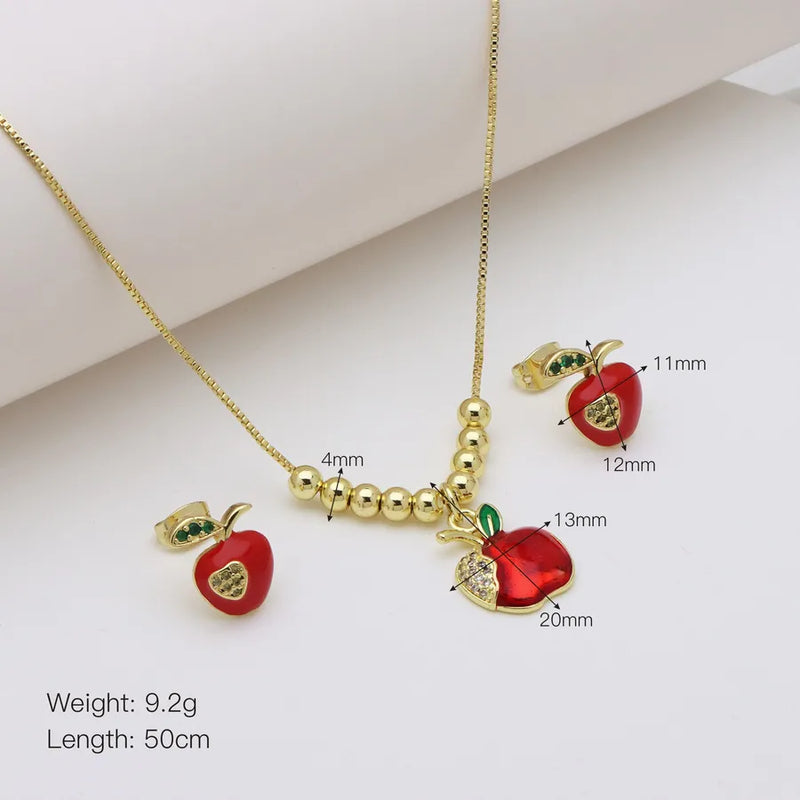 Wholesale Jewelry Elegant Lady Apple Copper Enamel box chain Earrings Necklace