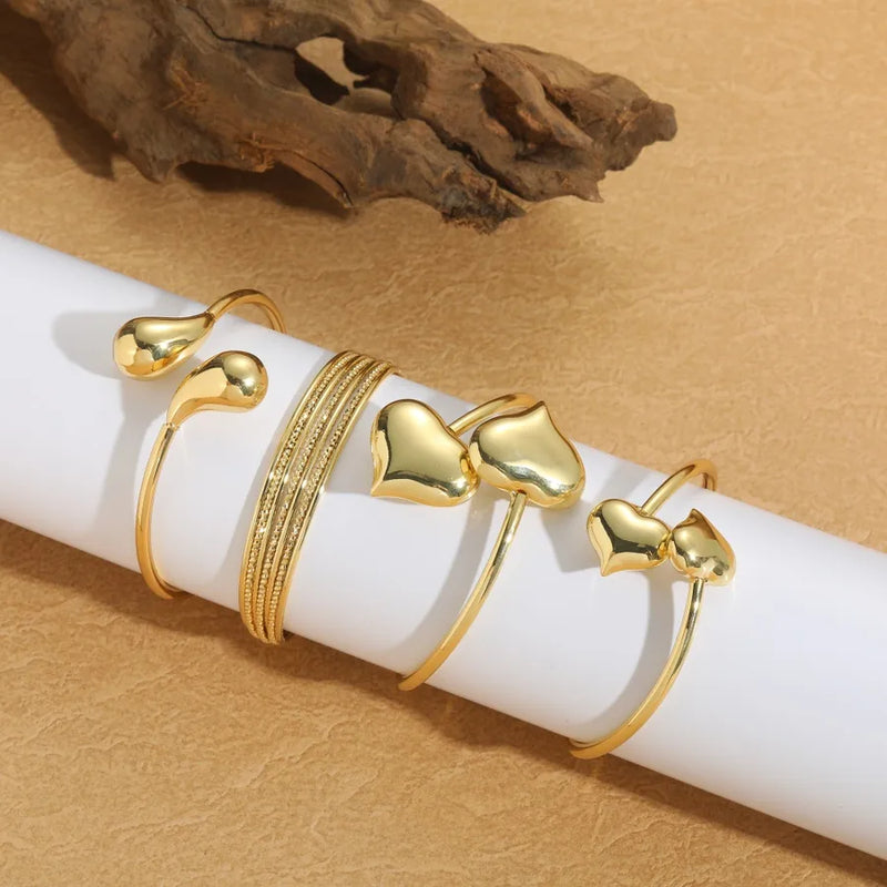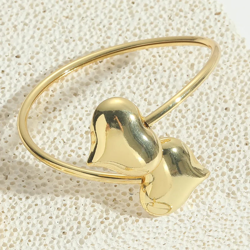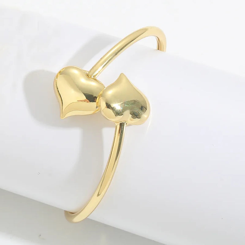 Wholesale Jewelry Elegant Retro Heart Shape Copper 14K Gold Plated Bangle