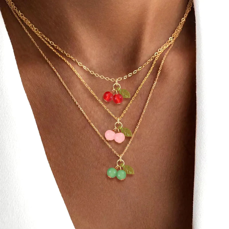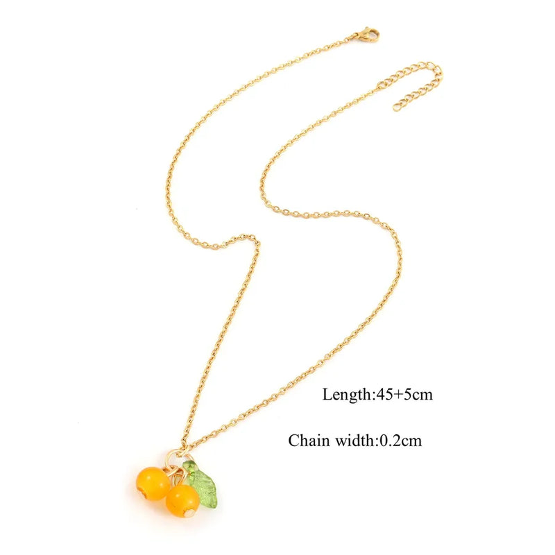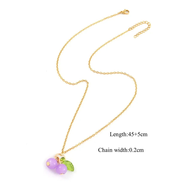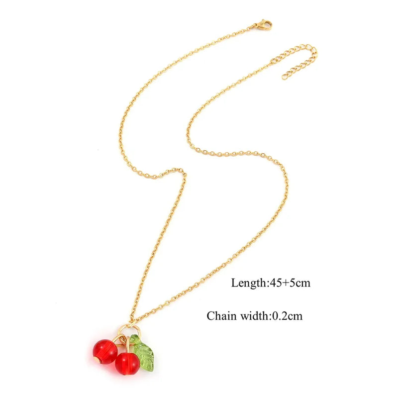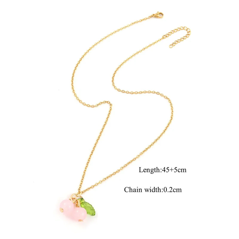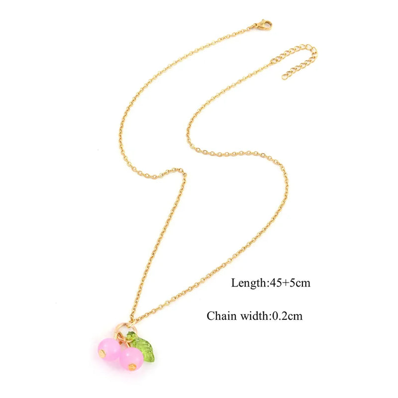 Wholesale Jewelry Elegant Simple Style Classic Style Cherry 201 Stainless Steel Copper cable chain Pendant Necklace