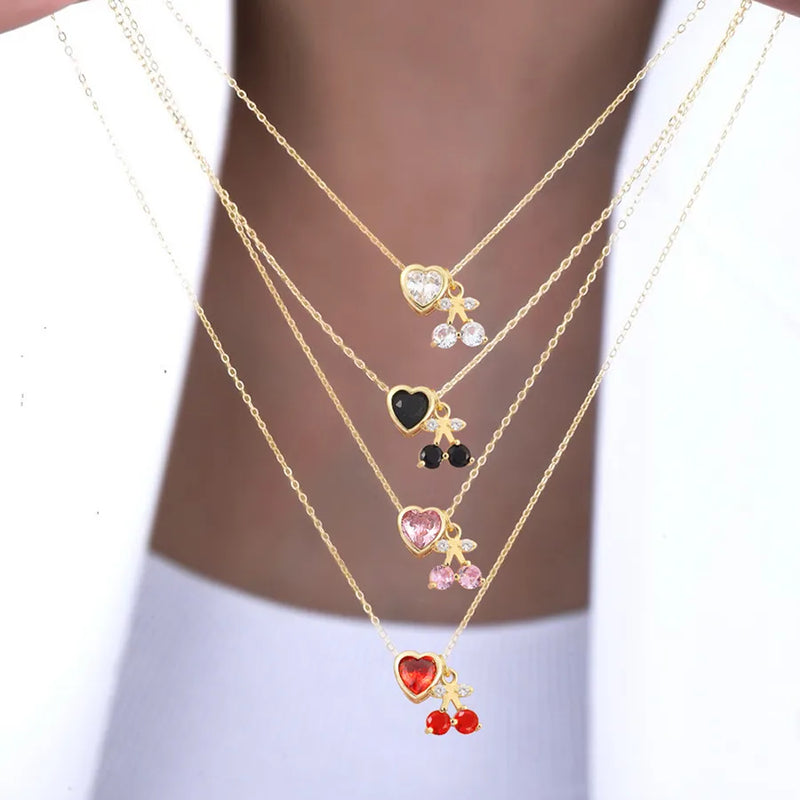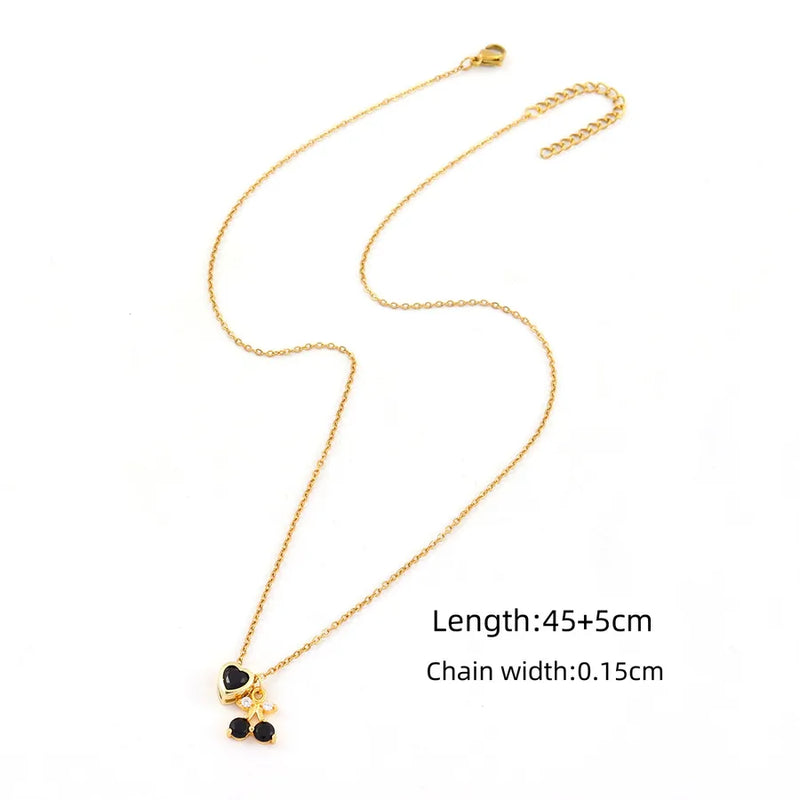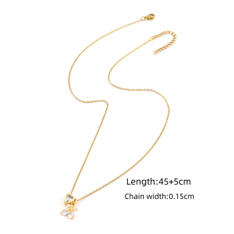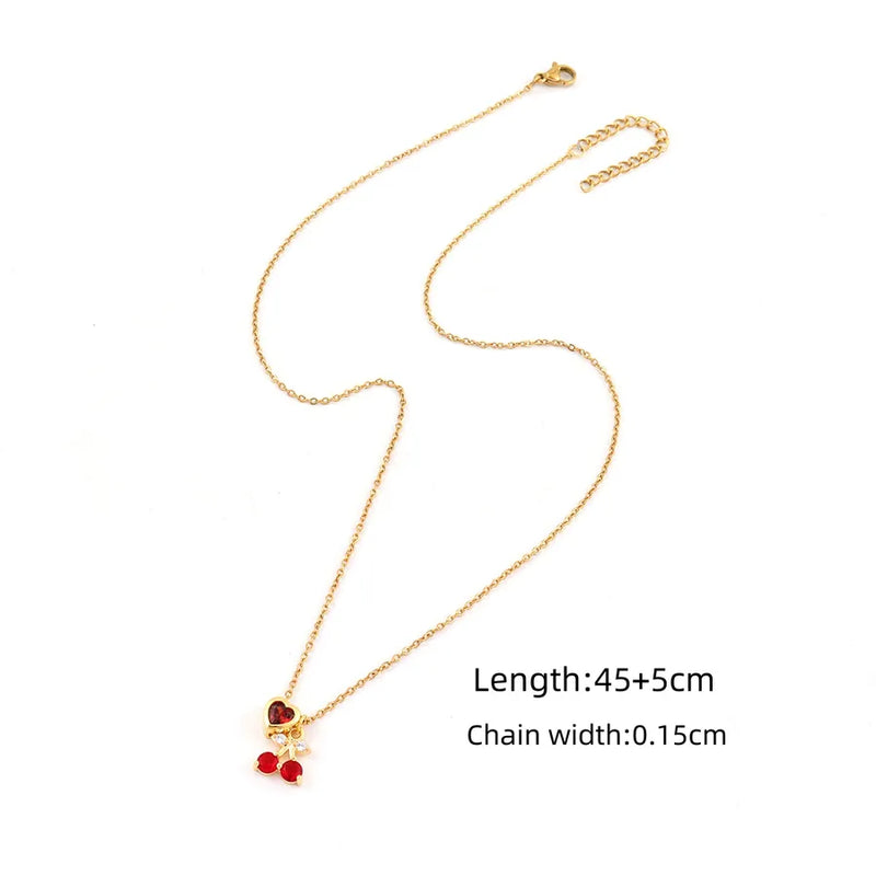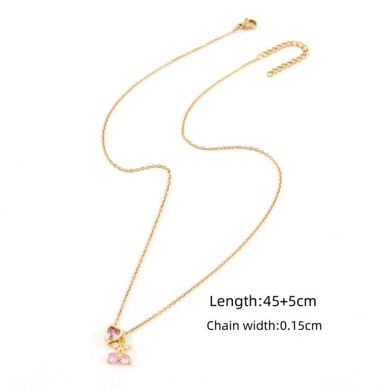 Wholesale Jewelry Elegant Simple Style Classic Style Cherry Heart Shape 201 Stainless Steel Zircon Inlay cable chain Pendant Necklace