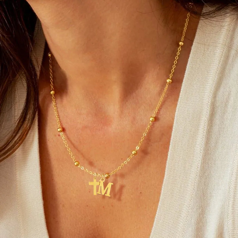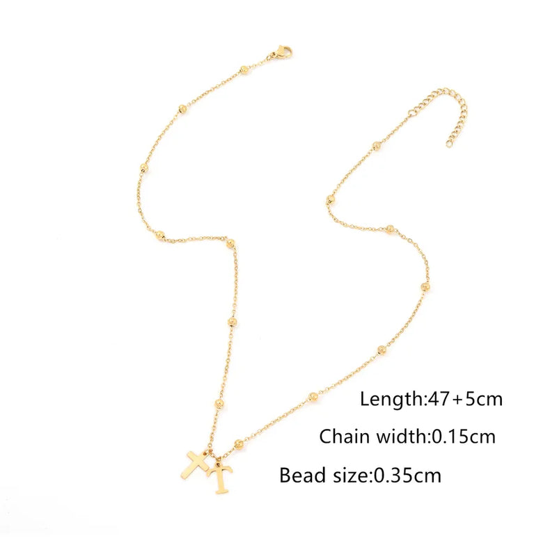 Wholesale Jewelry Elegant Simple Style Classic Style Cross Letter 201 Stainless Steel 304 Stainless Steel ball chain Pendant Necklace