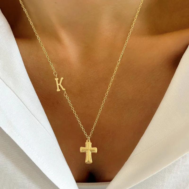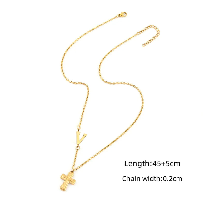 Wholesale Jewelry Elegant Simple Style Classic Style Cross Letter 201 Stainless Steel 304 Stainless Steel Pendant Necklace cable chain