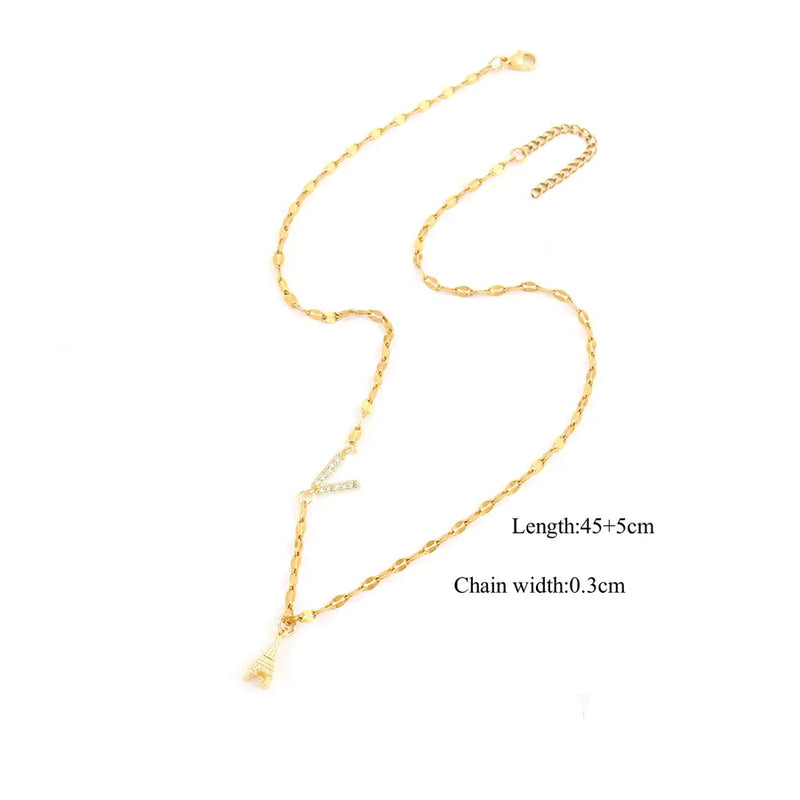 Wholesale Jewelry Elegant Simple Style Classic Style Eiffel Tower Letter 201 Stainless Steel 304 Stainless Steel Copper Lip Chain Pendant Necklace