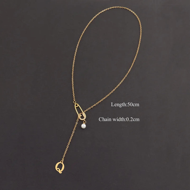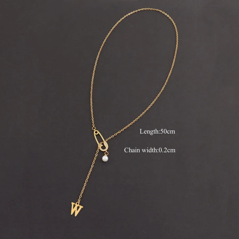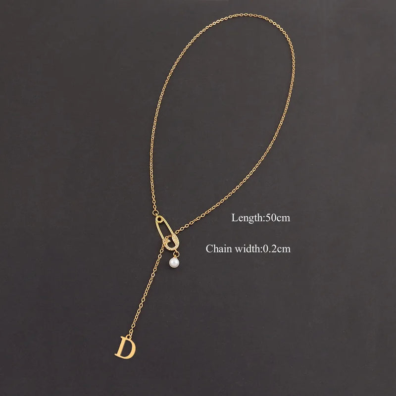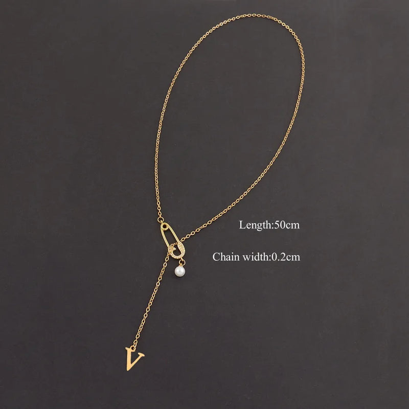 Wholesale Jewelry Elegant Simple Style Classic Style Pin Letter 201 Stainless Steel 304 Stainless Steel Copper Zircon cable chain Pendant Necklace