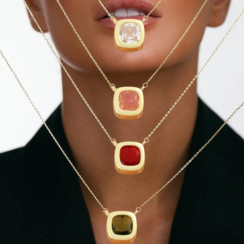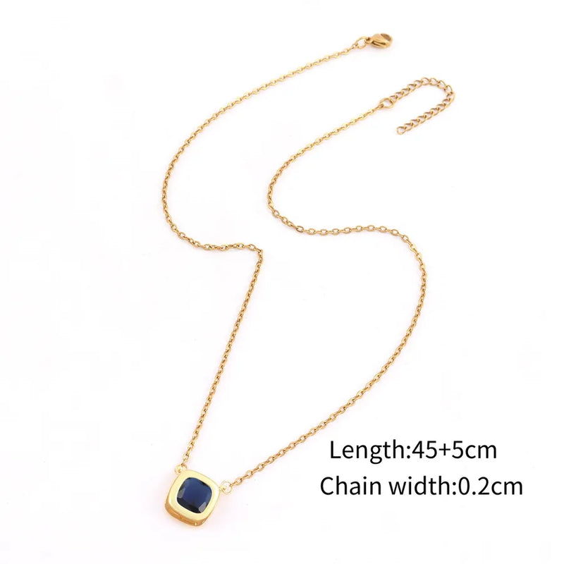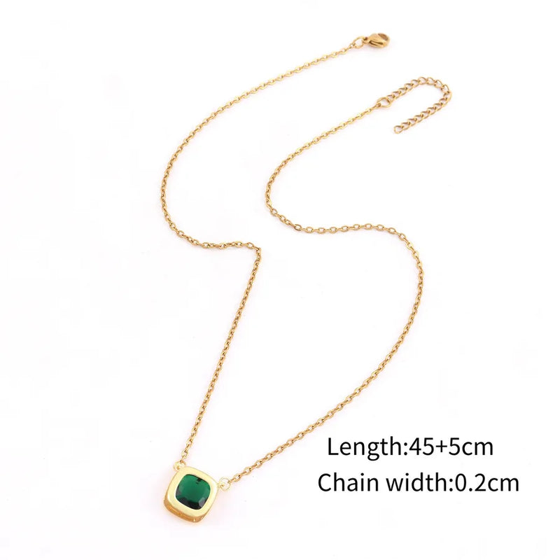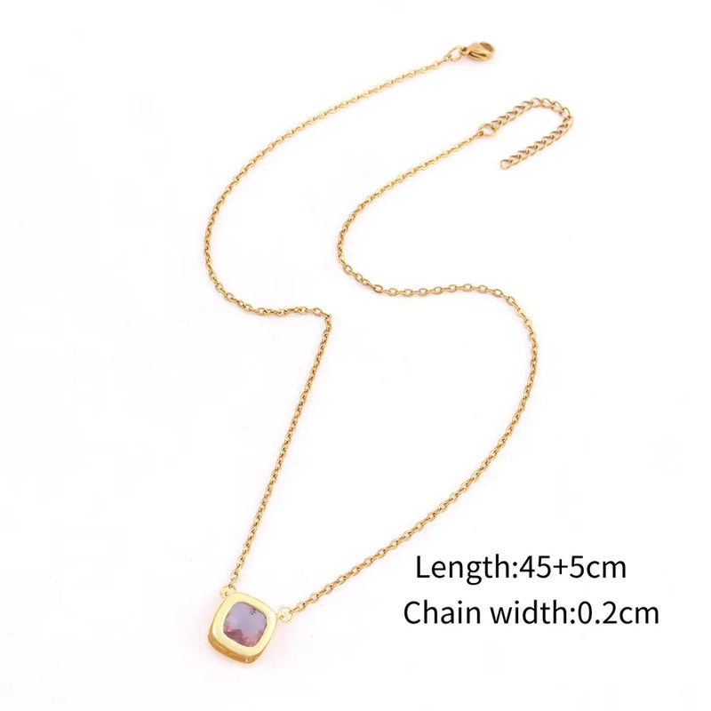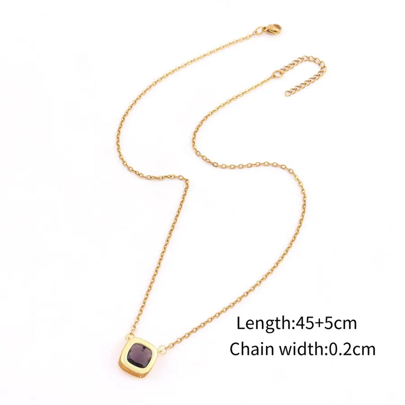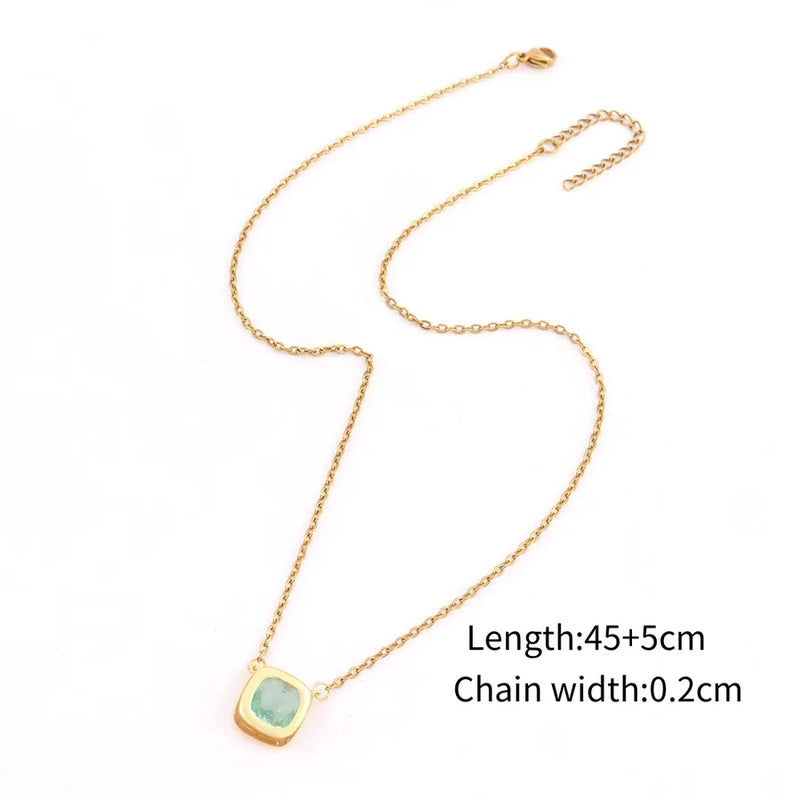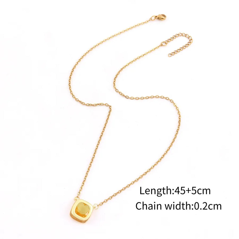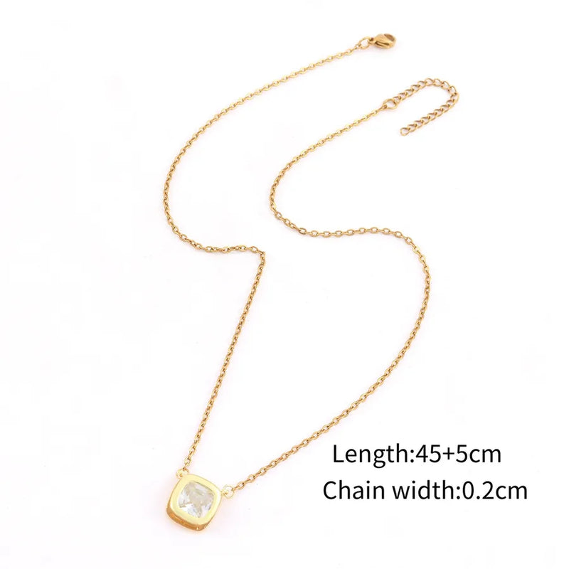 Wholesale Jewelry Elegant Simple Style Classic Style Square 201 Stainless Steel Artificial Crystal Copper Artificial Crystal Inlay cable chain Pendant Necklace