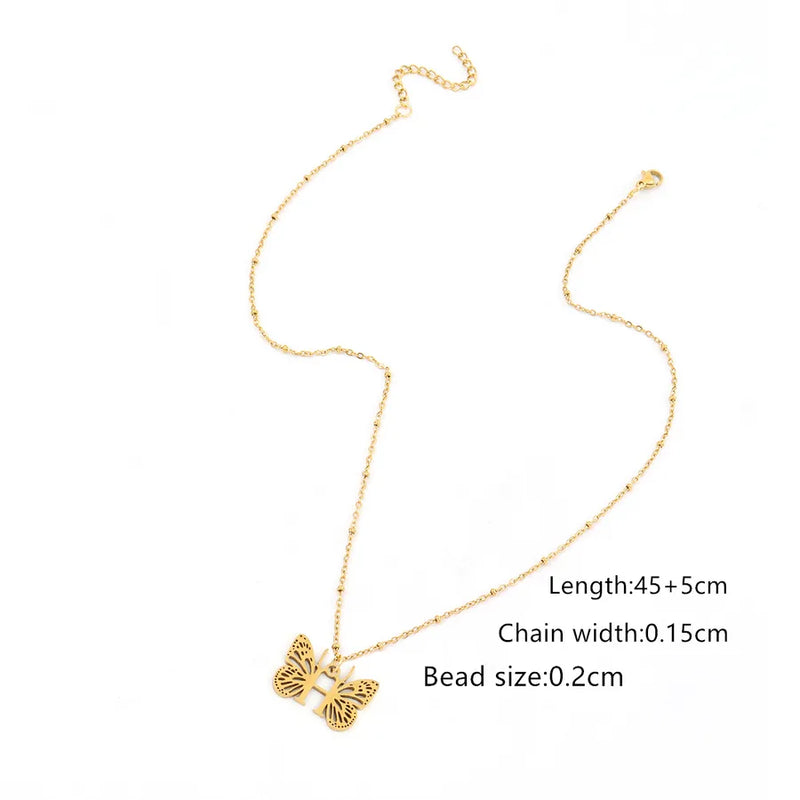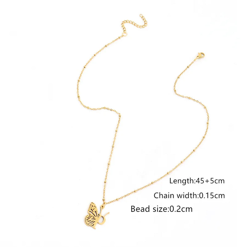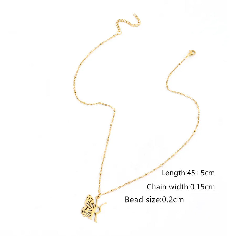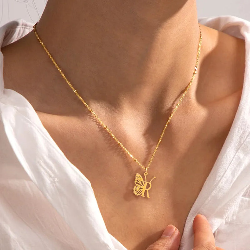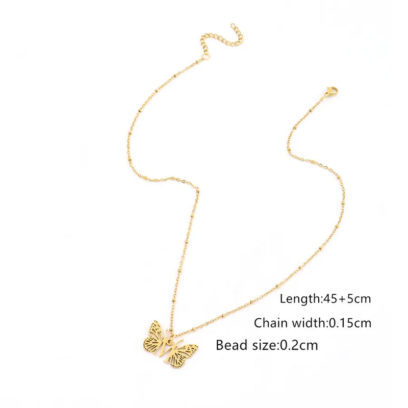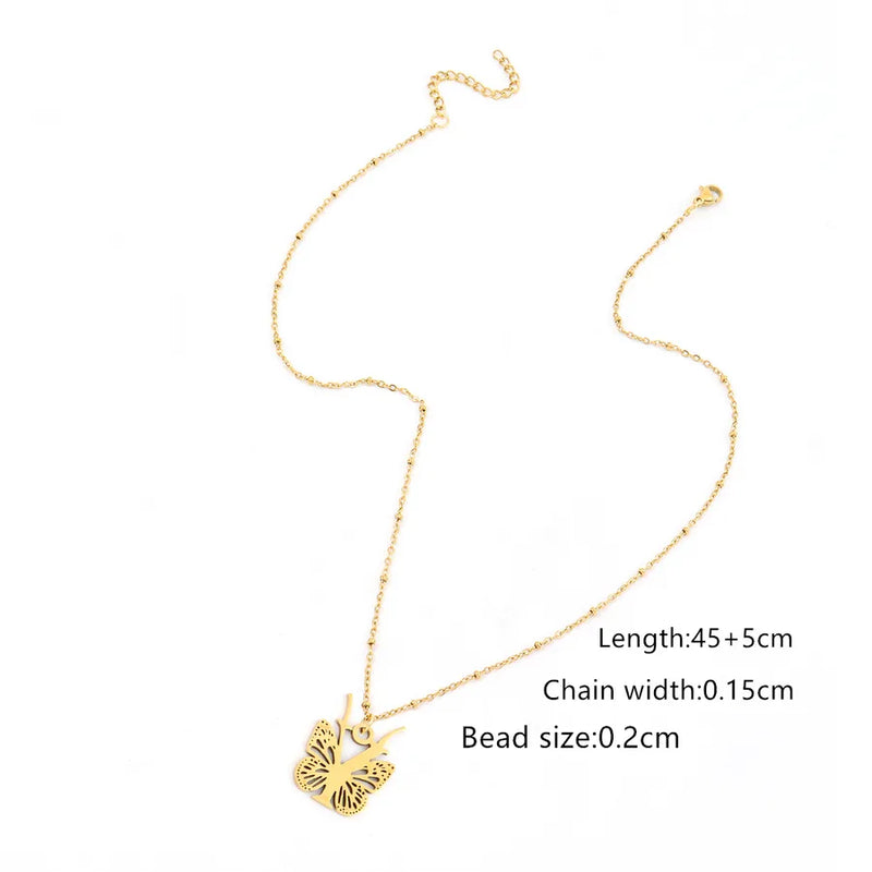 Wholesale Jewelry Elegant Simple Style Letter Butterfly 201 Stainless Steel 304 Stainless Steel Pendant Necklace Indirect Bead Necklace