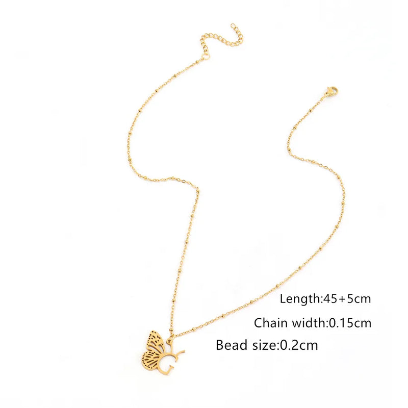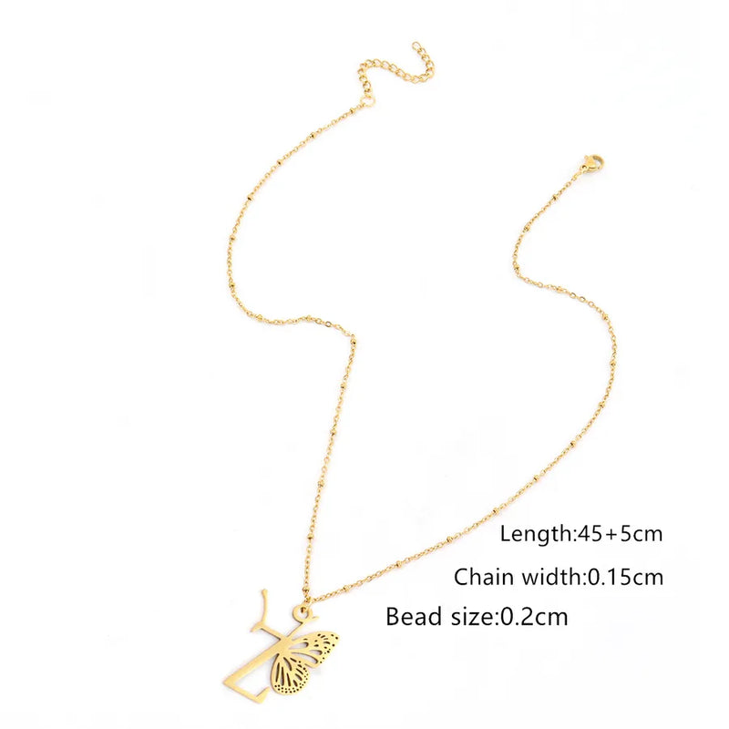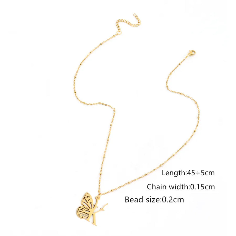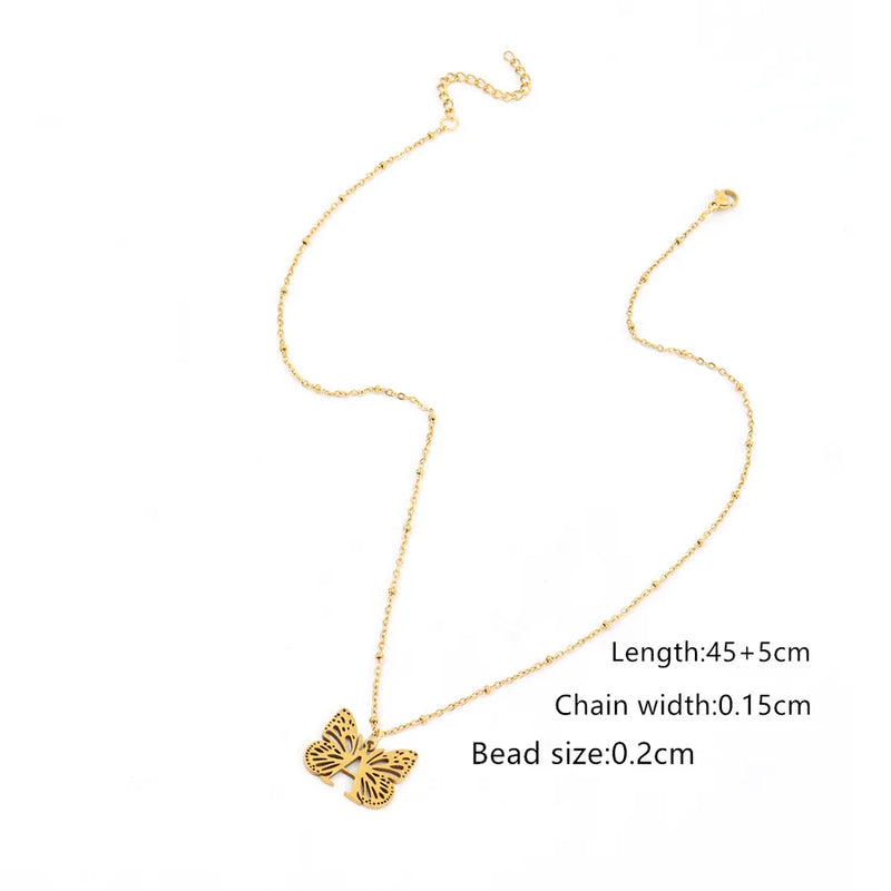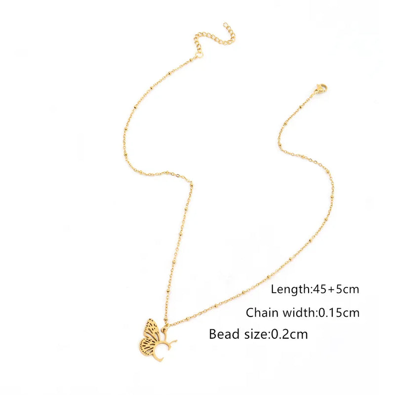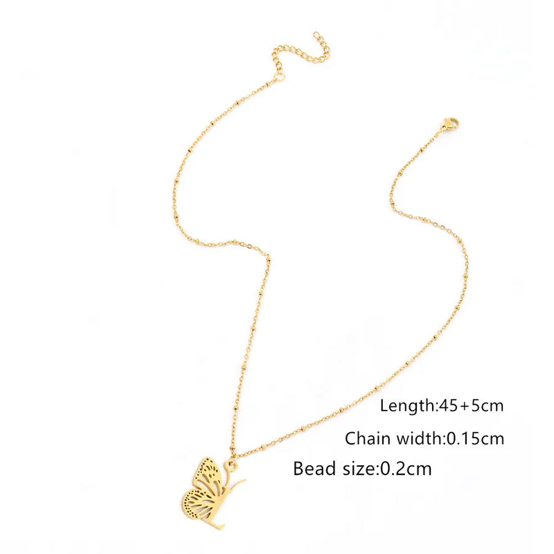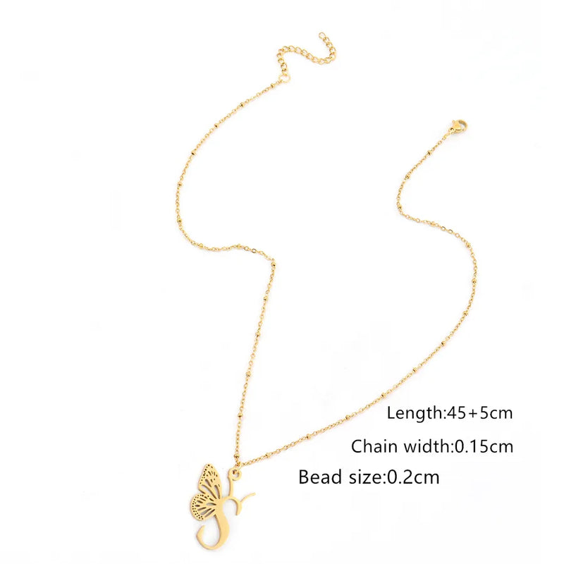 Wholesale Jewelry Elegant Simple Style Letter Butterfly 201 Stainless Steel 304 Stainless Steel Pendant Necklace Indirect Bead Necklace