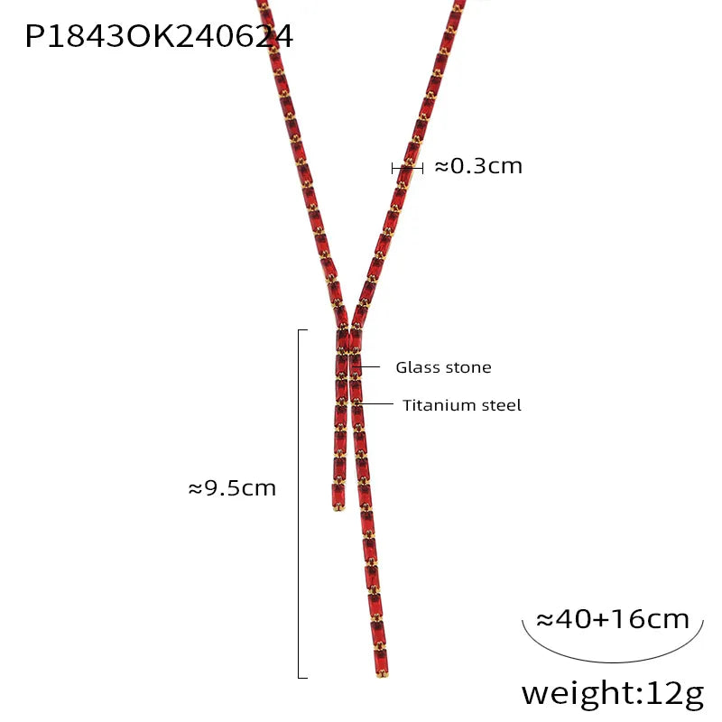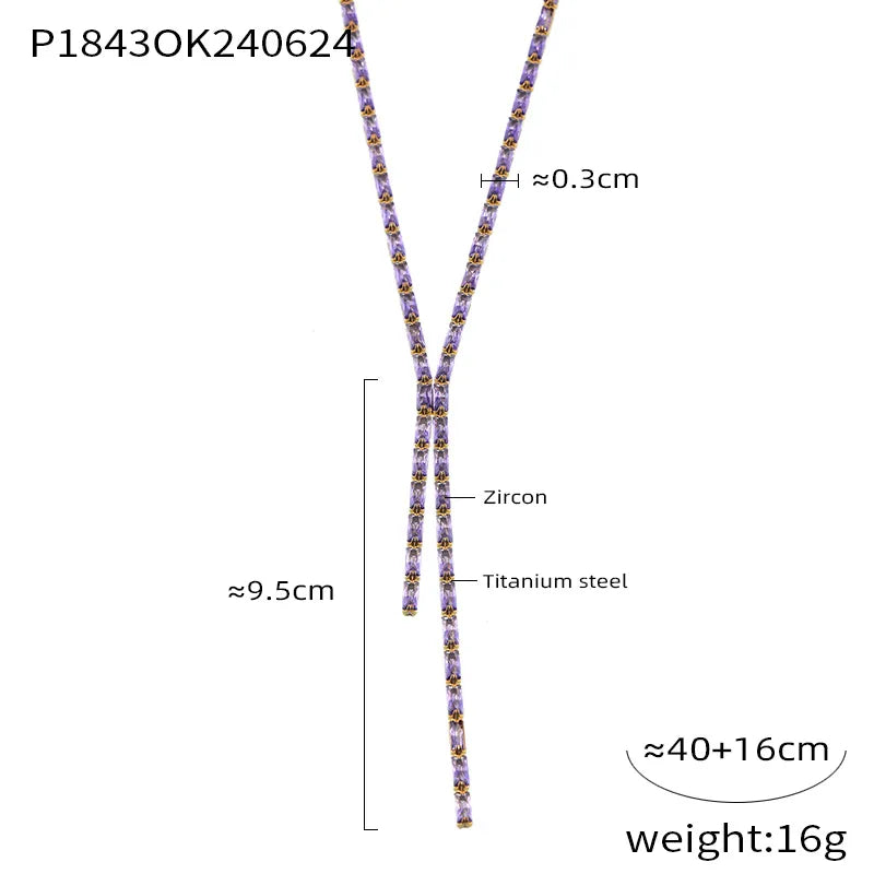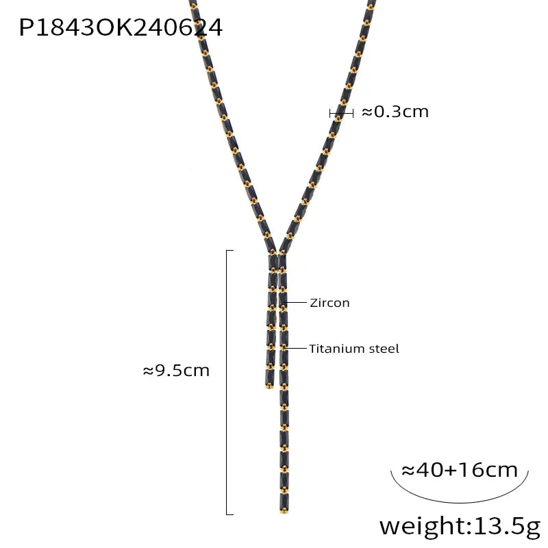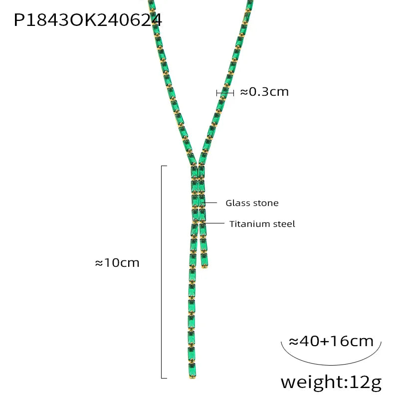 Wholesale Jewelry Elegant Simple Style Quadrilateral 304 Stainless Steel Glass Zircon 18K Gold Plated Inlay Pendant Necklace