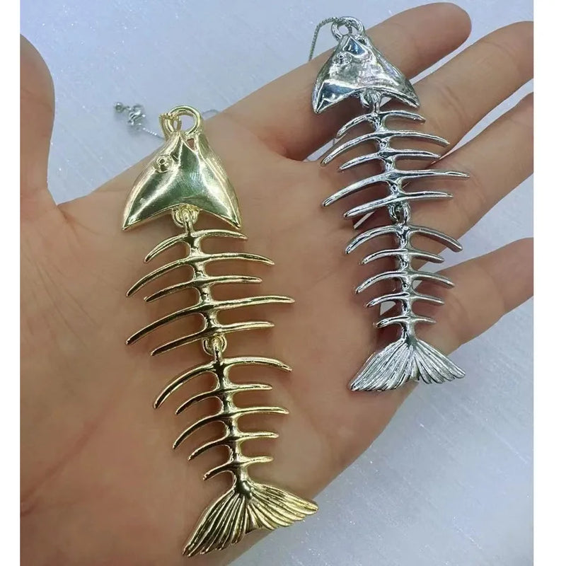 Wholesale Jewelry Funny Classic Style Artistic Fish Bone Copper 18K Gold Plated box chain Pendant Necklace
