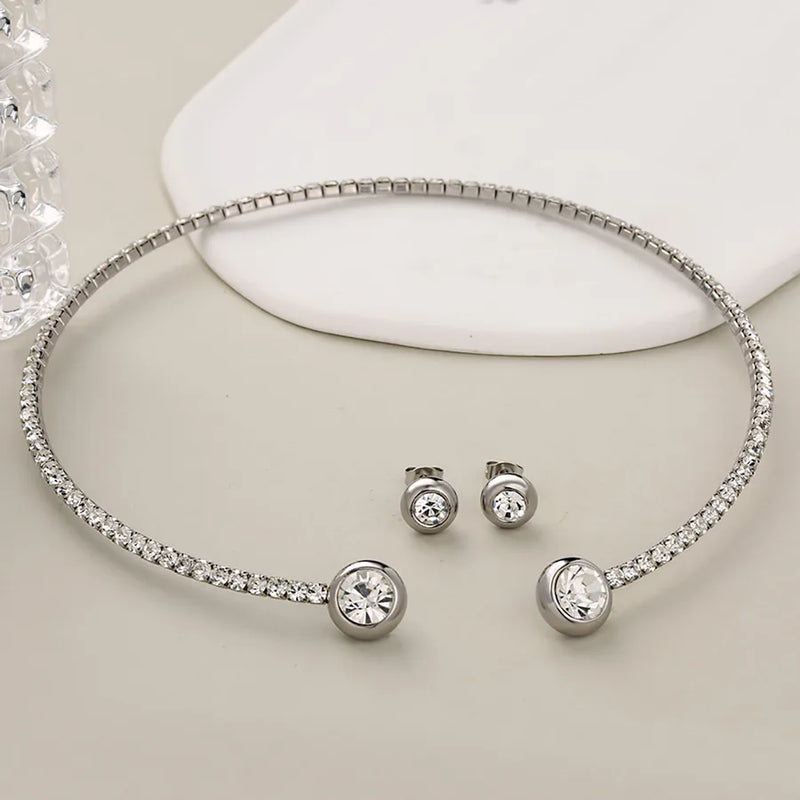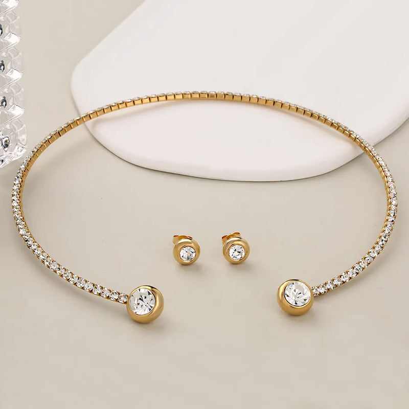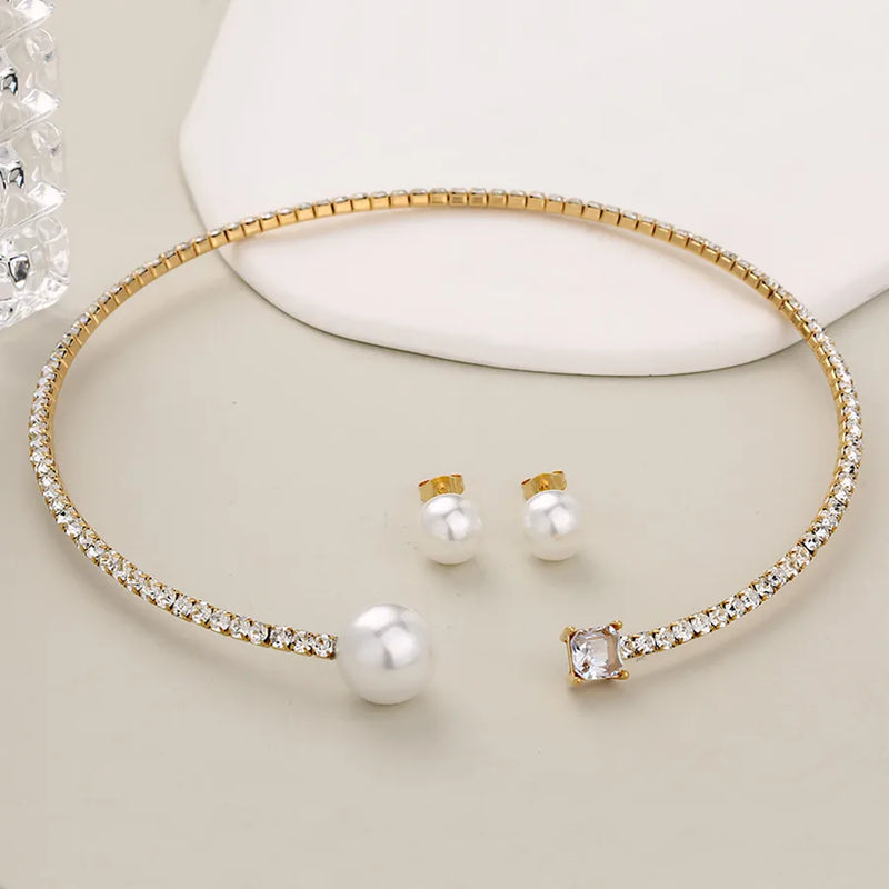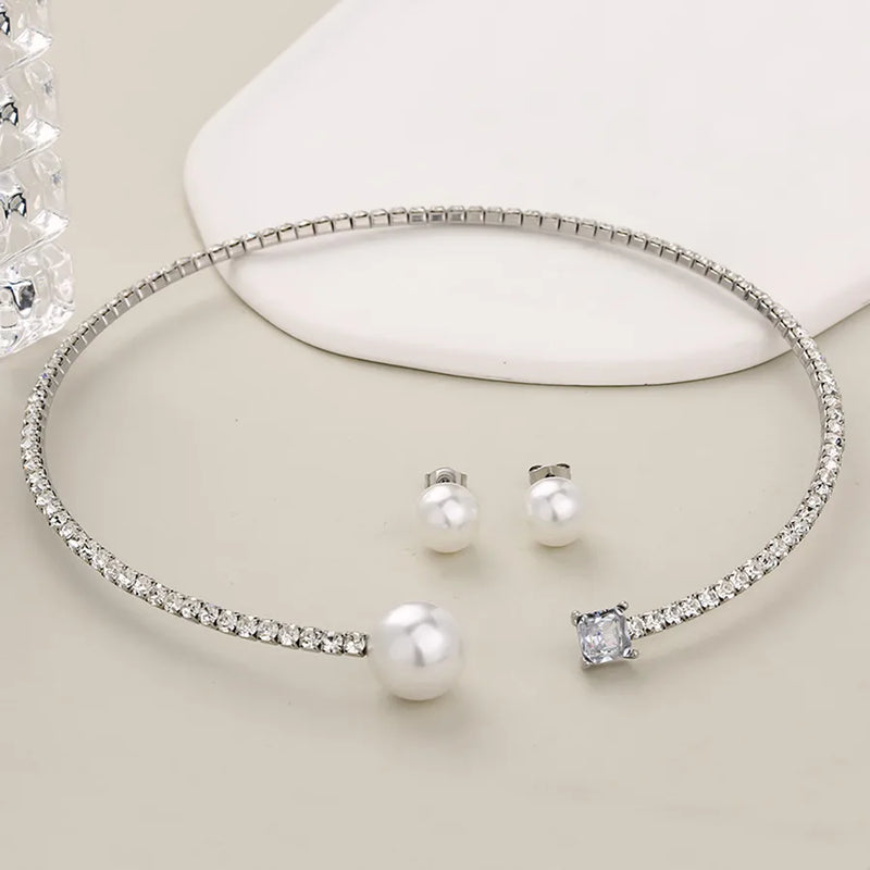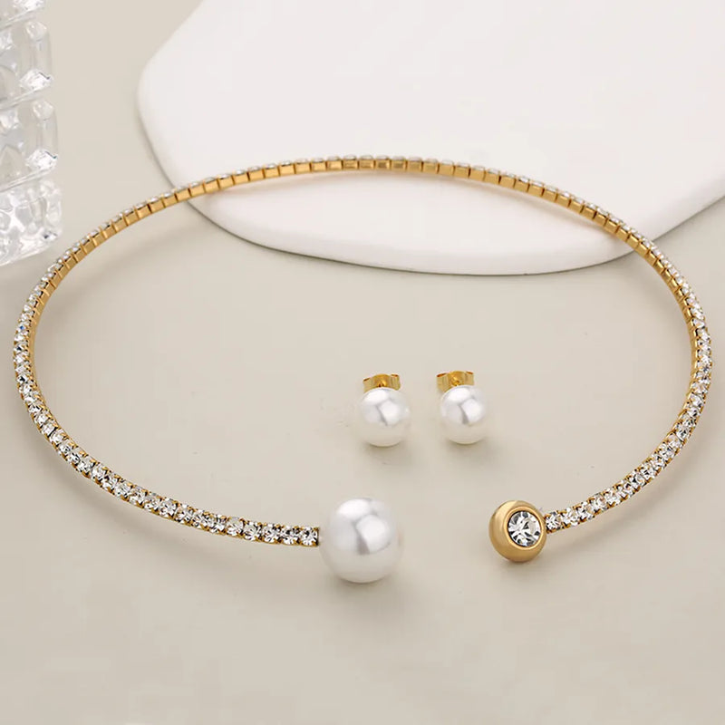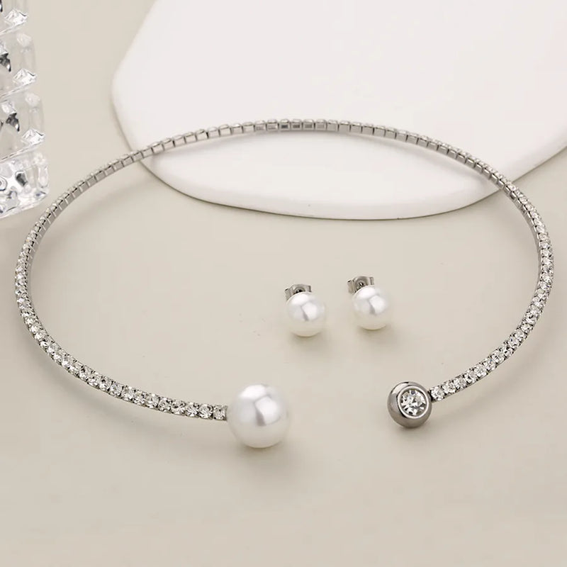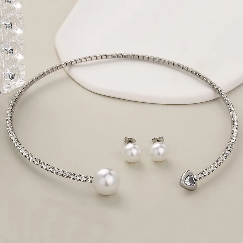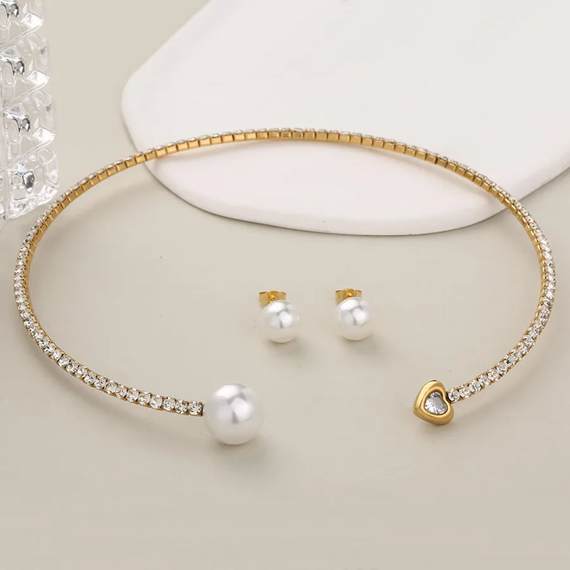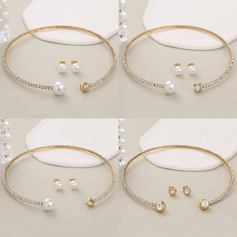 Wholesale Jewelry Glam Luxurious Shiny Circle Square Heart Shape 304 Stainless Steel Imitation Pearl Rhinestone Jewelry Set