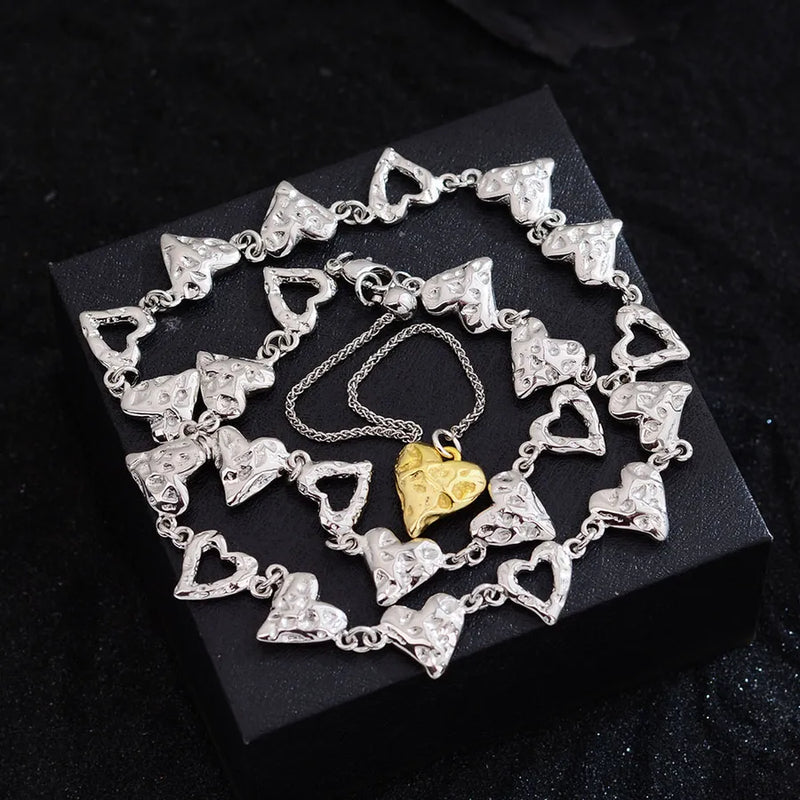 Wholesale Jewelry Hip-Hop Heart Shape Copper Necklace Beaded Chain