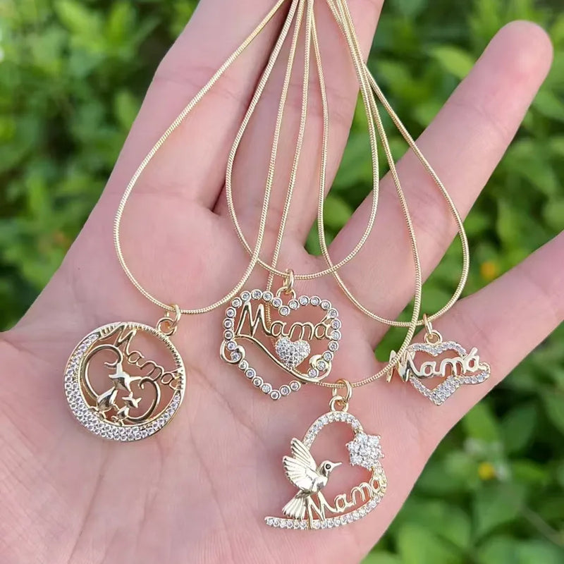 Wholesale Jewelry IG Style Casual Animal Vocabulary Words/Name Heart Shape Copper Zircon 18K Gold Plated Polishing Inlay snake chain Pendant Necklace