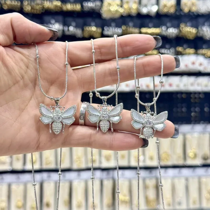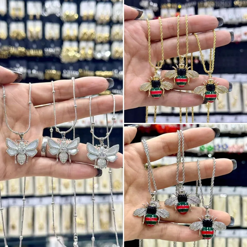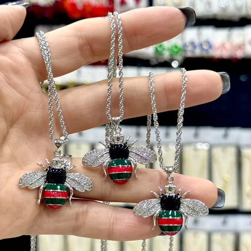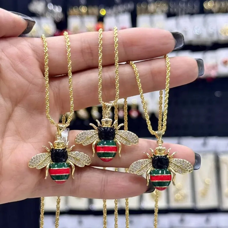 Wholesale Jewelry IG Style Casual Bee Copper Zircon 18K Gold Plated White Gold Plated Polishing Enamel Inlay Twisted Rope Chain snake chain Pendant Necklace