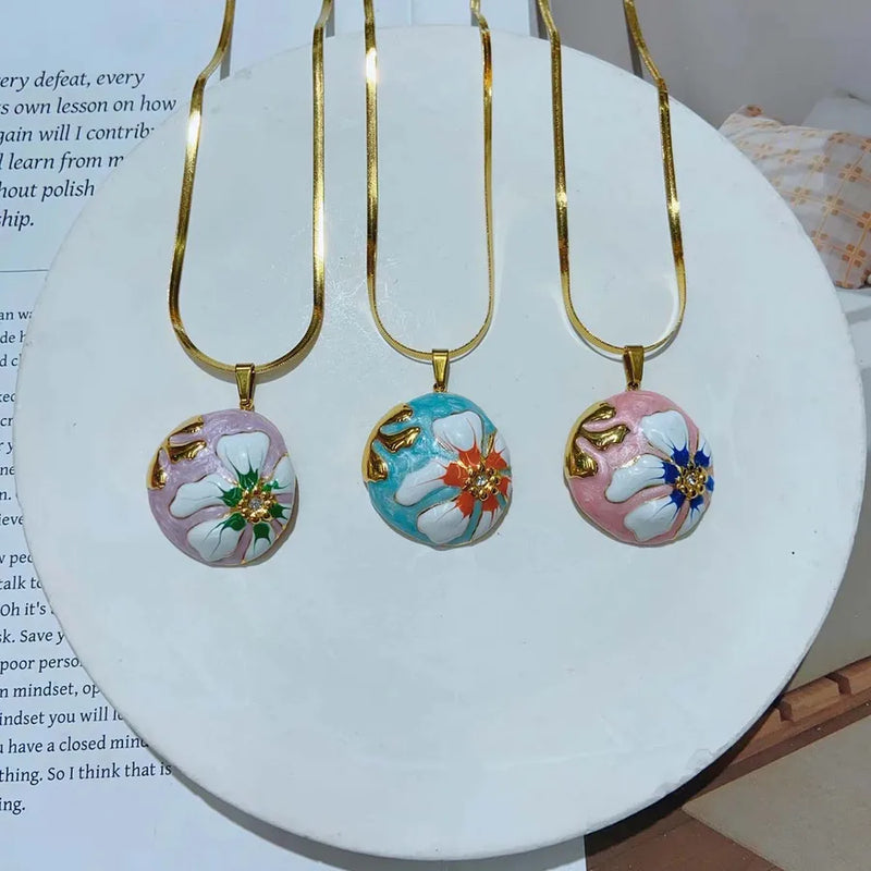 Wholesale Jewelry IG Style Cute Artistic Flower 304 Stainless Steel 18K Gold Plated Plating Blade chain Pendant Necklace