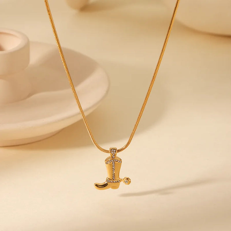 Wholesale Jewelry IG Style Elegant Shiny High Heel 304 Stainless Steel Titanium Steel Zircon 18K Gold Plated Inlay snake chain Pendant Necklace