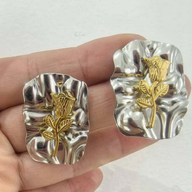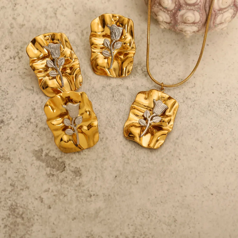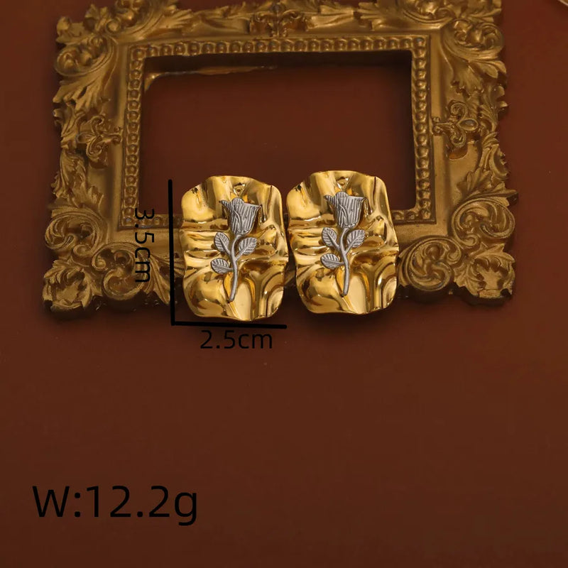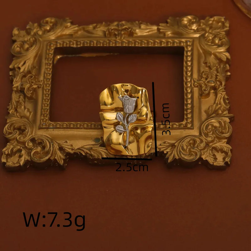 Wholesale Jewelry IG Style Exaggerated Rose 304 Stainless Steel 18K Gold Plated White Gold Plated Rings Earrings Necklace