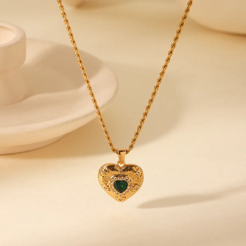 Wholesale Jewelry IG Style Romantic Shiny Heart Shape 304 Stainless Steel Titanium Steel Zircon 18K Gold Plated Diamond Twisted Rope Chain Pendant Necklace