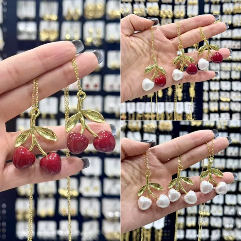 Wholesale Jewelry IG Style Sweet Cherry Copper 18K Gold Plated Polishing Enamel cable chain Pendant Necklace