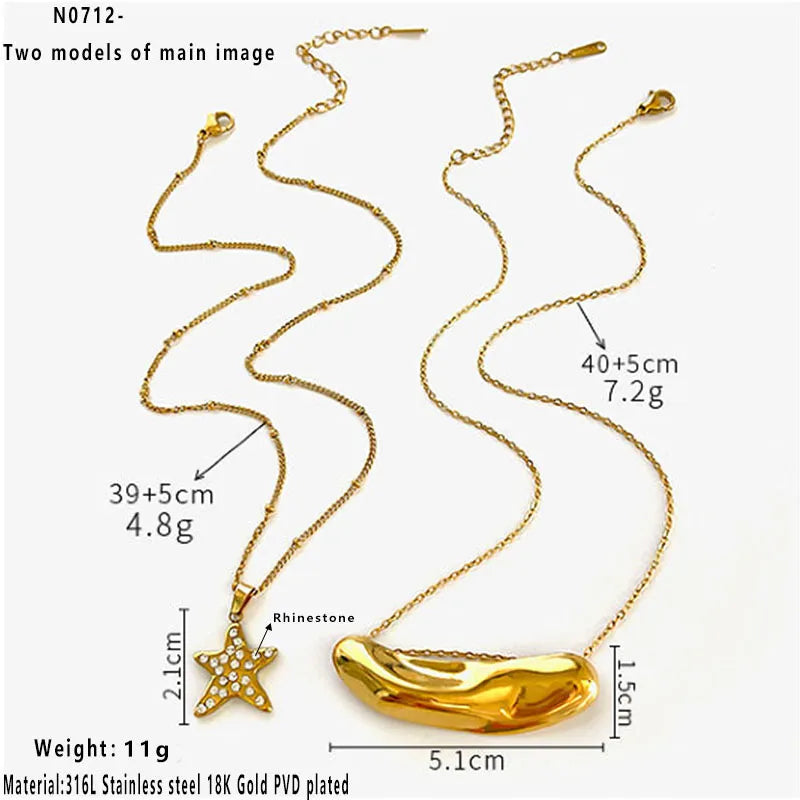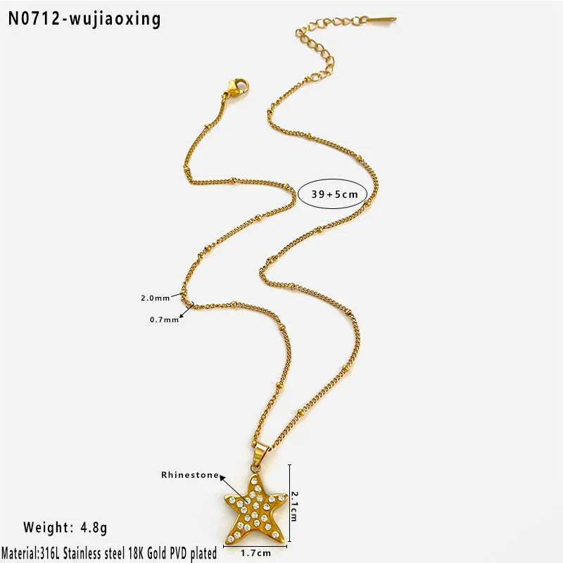 Wholesale Jewelry Luxurious Simple Style Commute Pentagram 316L Stainless Steel Rhinestones 18K Gold Plated Irregular cable chain Pendant Necklace