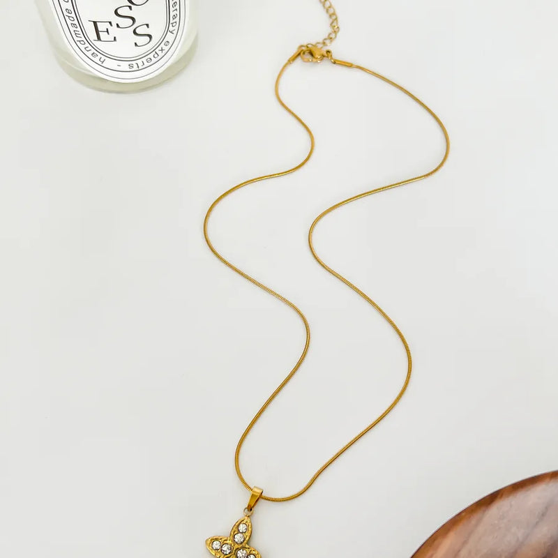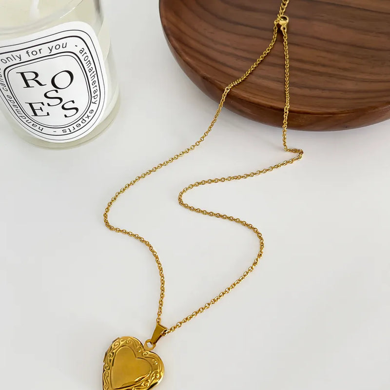 Wholesale Jewelry Luxurious Simple Style Heart Shape 316L Stainless Steel Rhinestones 18K Gold Plated Plating Inlay Pendant Necklace