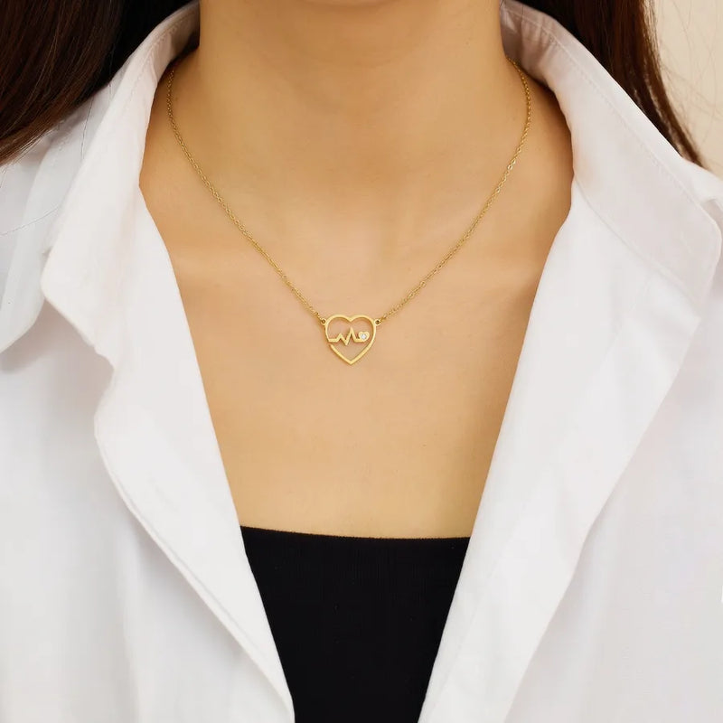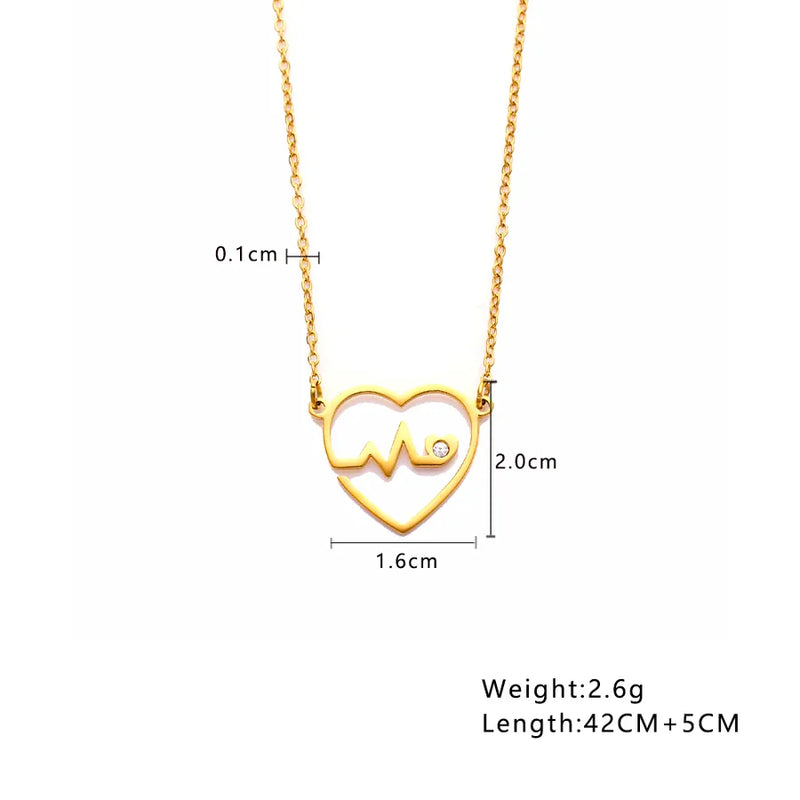 Wholesale Jewelry Modern Style Simple Style Classic Style Electrocardiogram Heart Shape 304 Stainless Steel Zircon 18K Gold Plated Plating Inlay Pendant Necklace