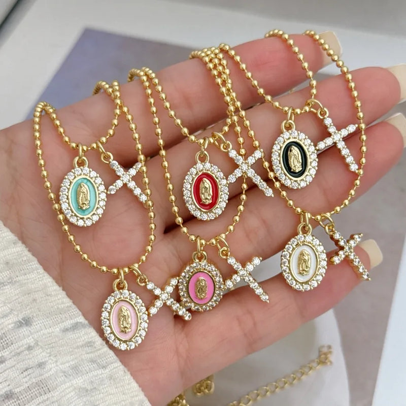 Wholesale Jewelry Original Design Novelty Simple Style Faith Cross Virgin Mary Copper Copper 18K Gold Plated Plating