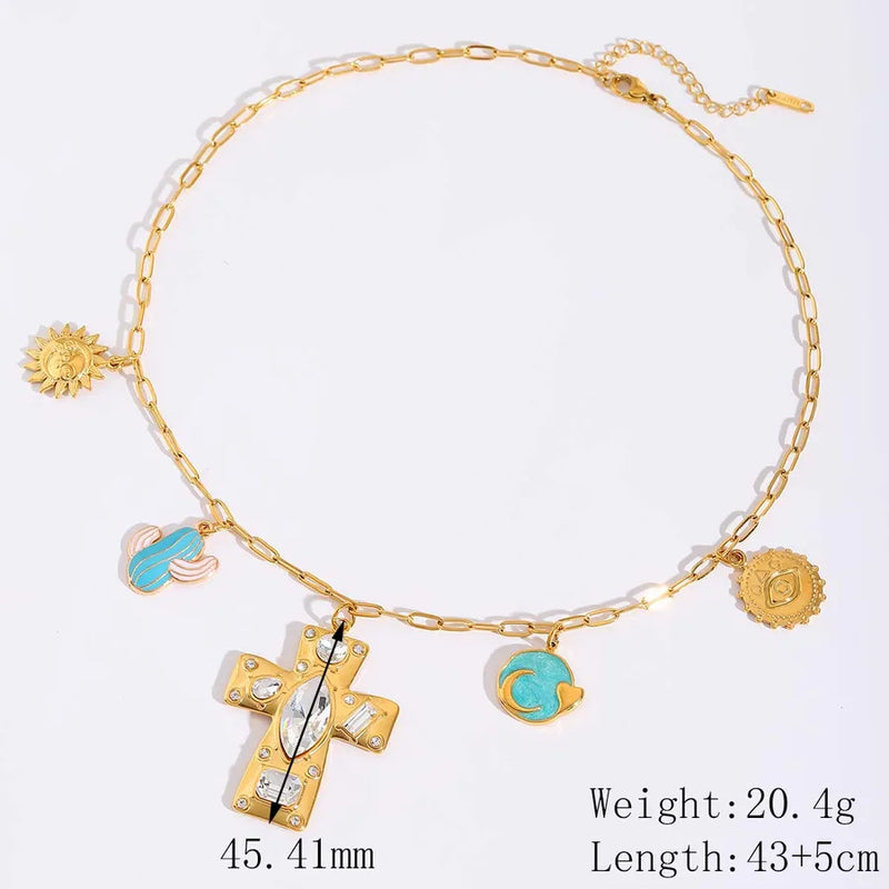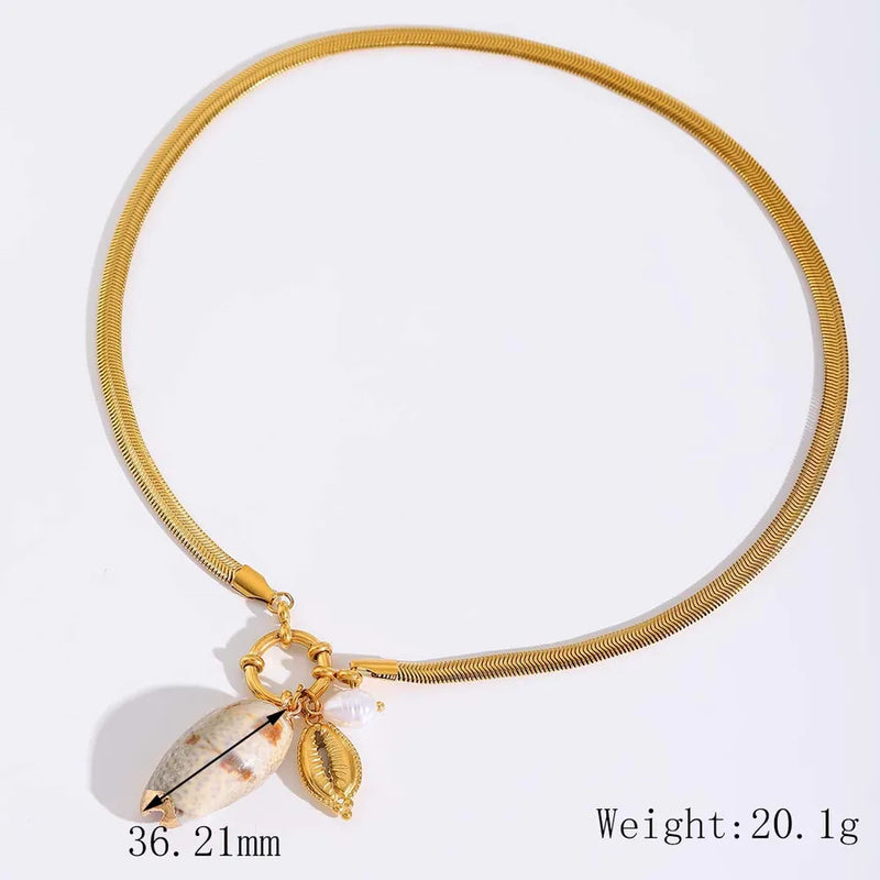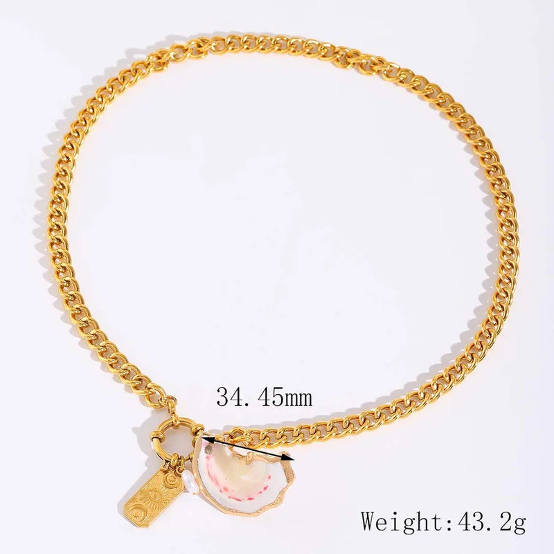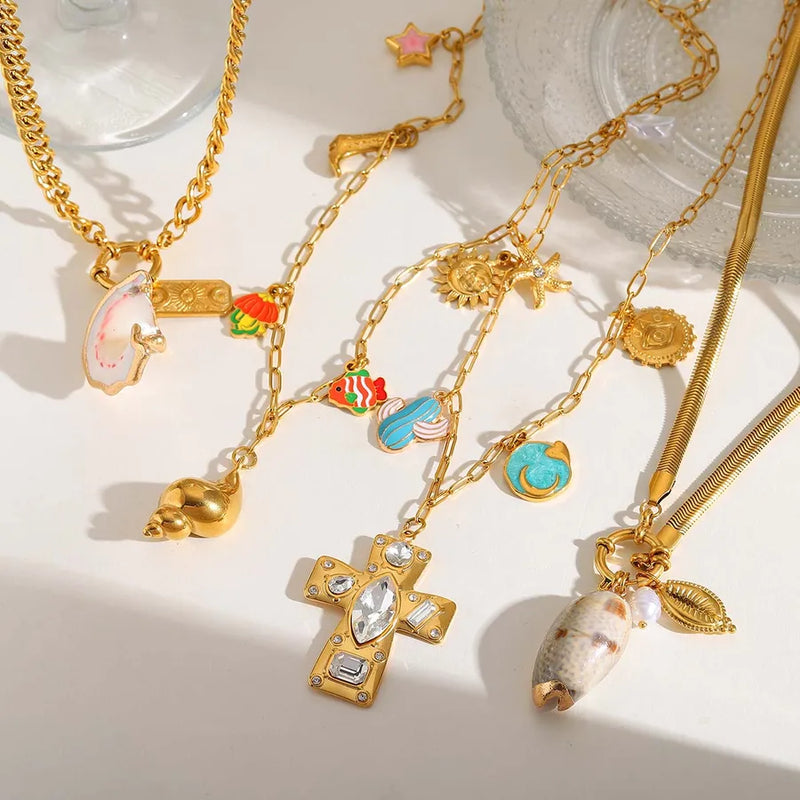 Wholesale Jewelry Religion Marine Style Beach Cross Conch Shell 304 Stainless Steel Imitation Pearl Natural Shell Zircon 18K Gold Plated Epoxy Plating Inlay Paperclip Chain cable chain snake chain Multi Charms Necklace